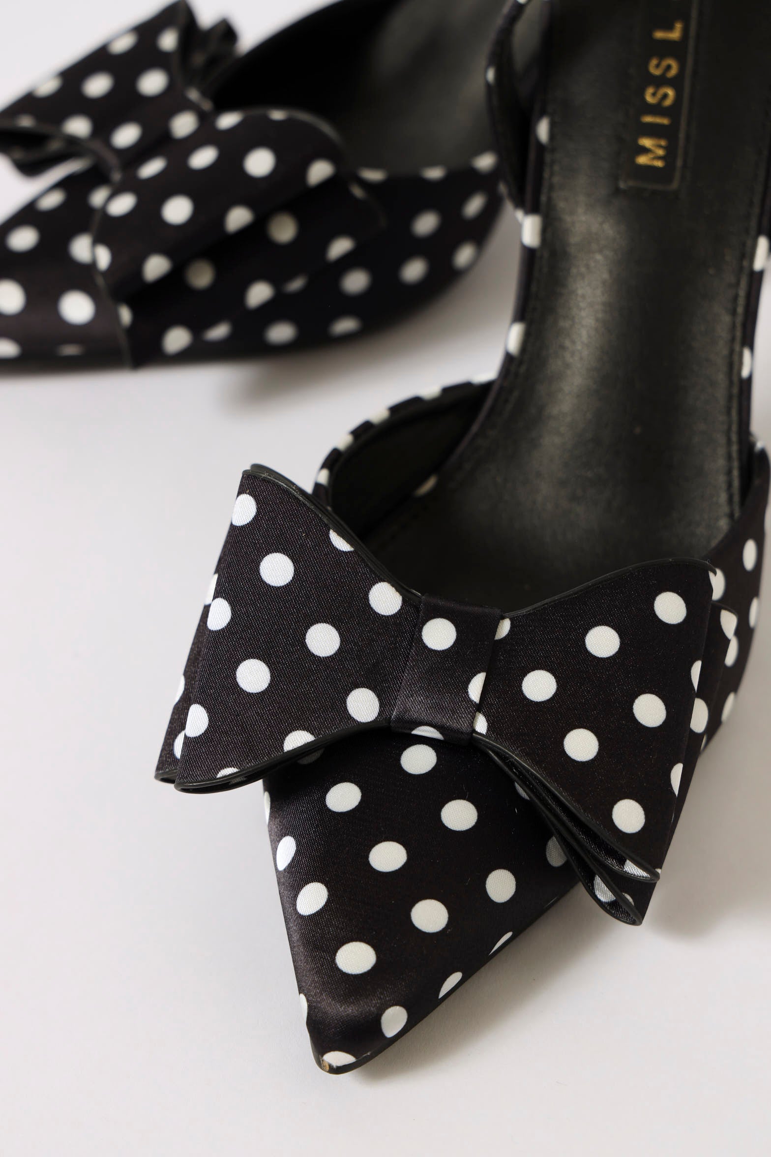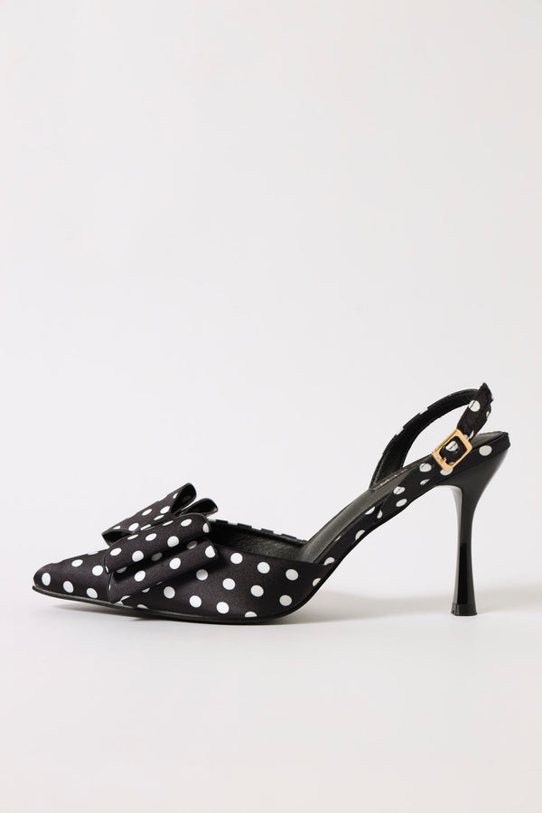 Channel retro-chic vibes with these adorable mini polka dot bow slingback courts in classic black! The sweet polka dot pattern paired with a delicate bow detail brings playful femininity to a timeless silhouette. The slingback design offers secure support and easy on-off convenience, while the court heel provides just the right amount of lift for all-day wearability. Perfect for the office, special occasions, or whenever you want to add a dash of vintage charm. Cute, comfortable, and utterly charming!
