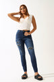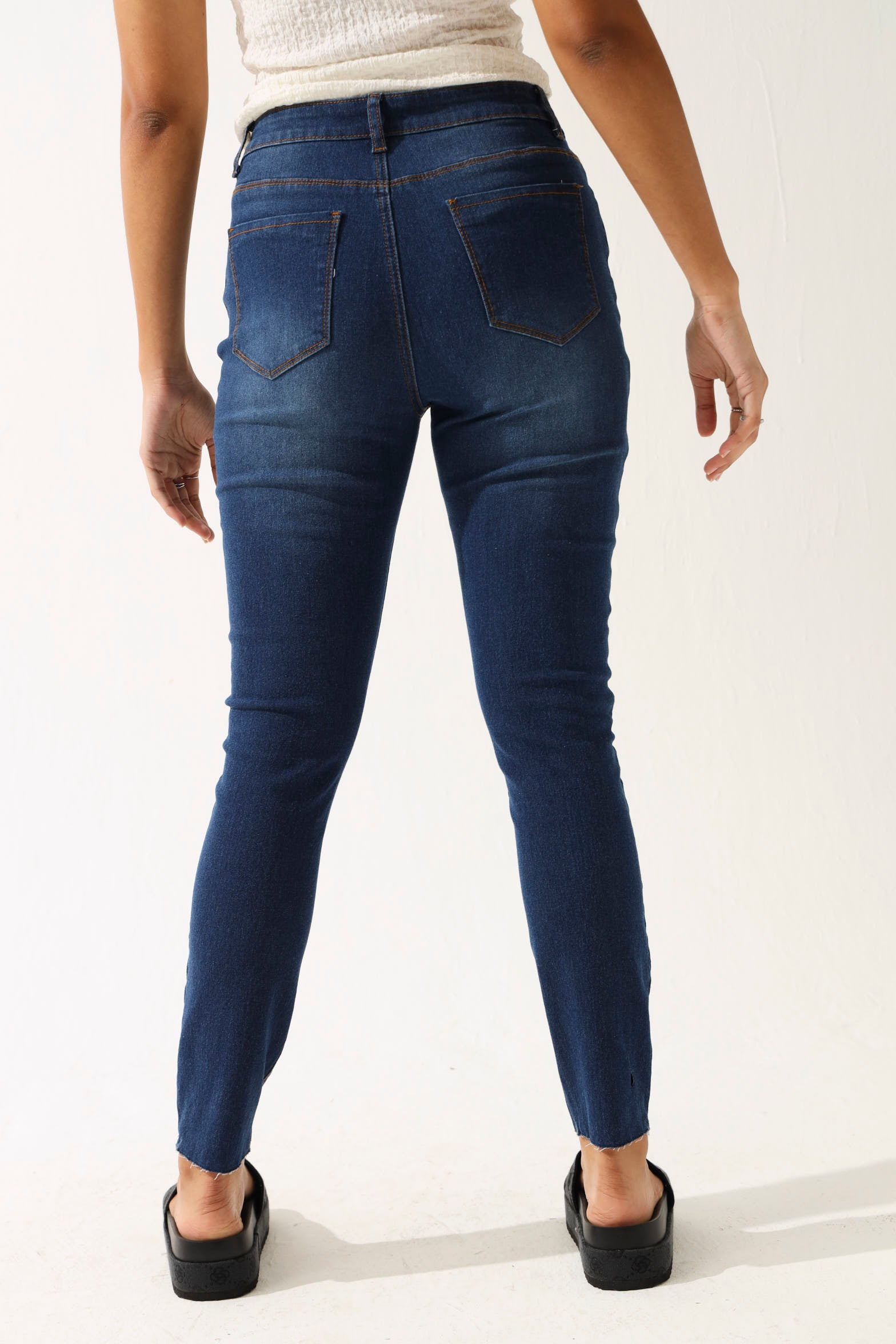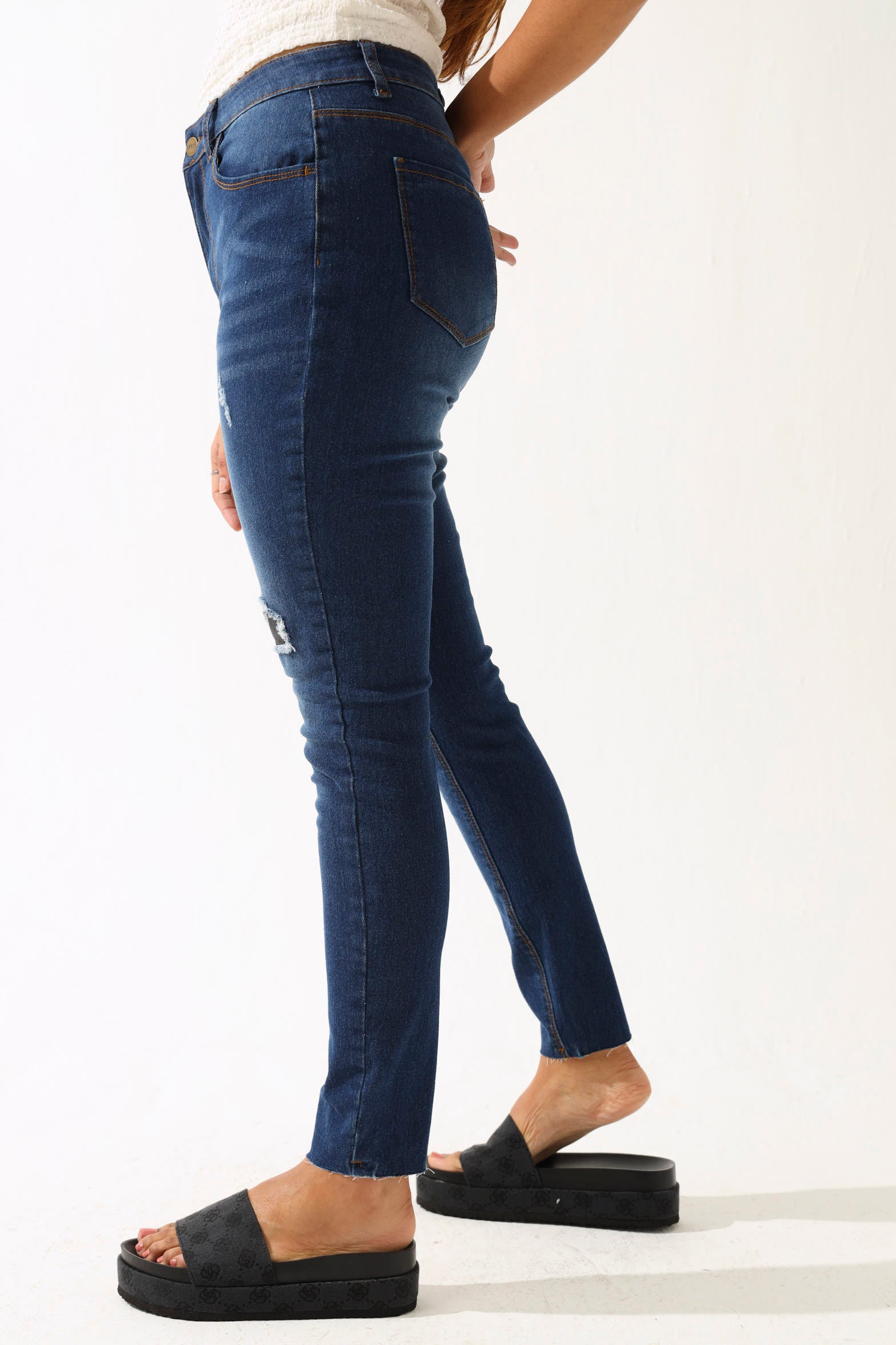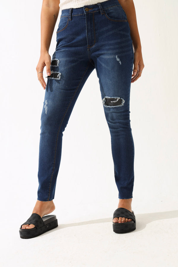 Rock a bold edge with these patched skinny jeans in deep ink. The strategic patches add personality and attitude to a timeless silhouette, giving you that effortlessly cool vibe. Crafted for a sleek, body-hugging fit, these jeans work with everything from oversized tees to fitted tops. The rich ink wash keeps things versatile while the distressed details tell a story of style. Whether you're dressing up with heels or keeping it casual with sneakers, these jeans are your go-to for looking put-together with an undeniable edge. Attitude included.