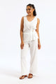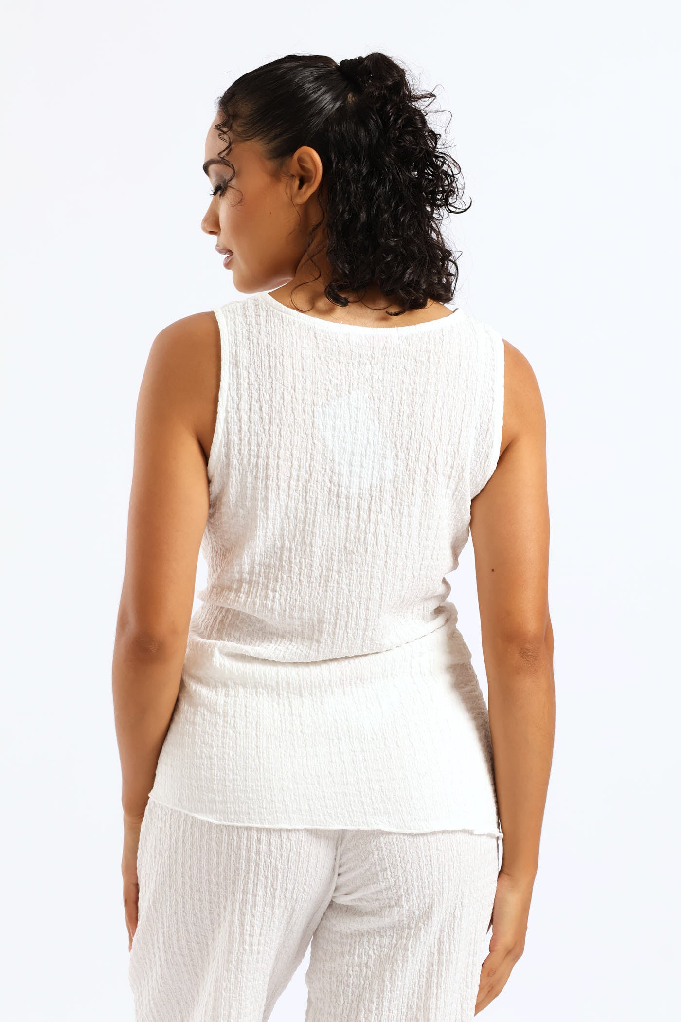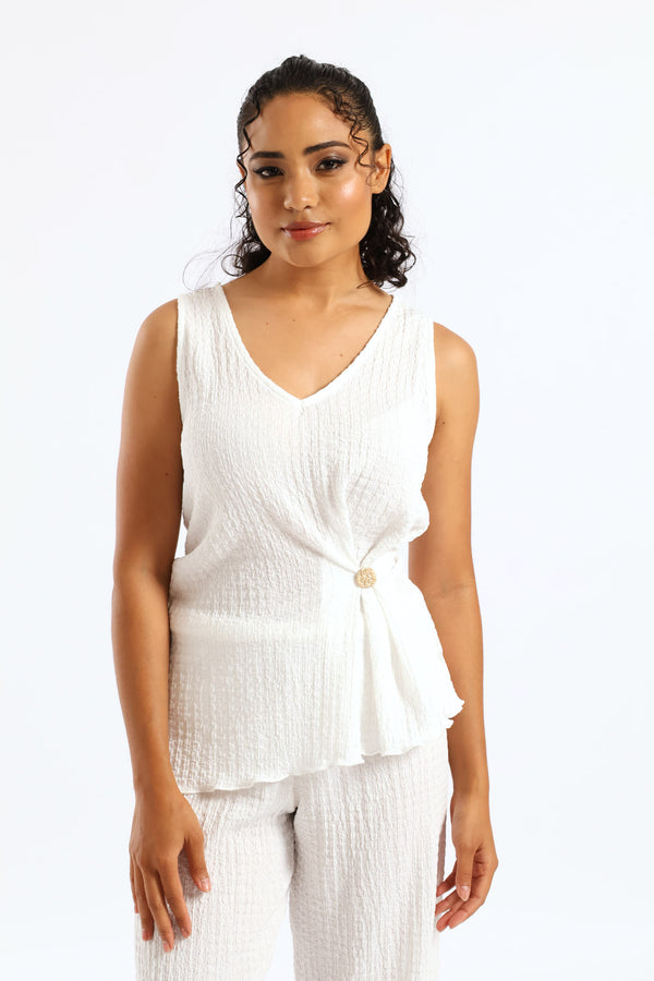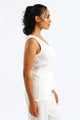 Sleeveless Asymmetrical Gold Trim Cami - Milk