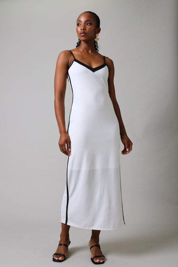 Sleeveless Contrast Binding Maxi Dress - White/Black