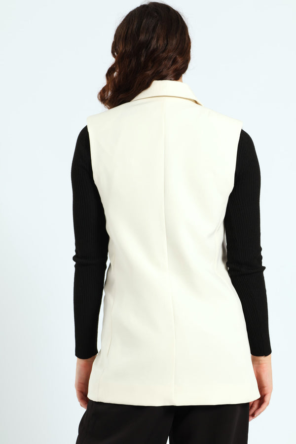 Sleeveless Double Breast Blazer - Cream