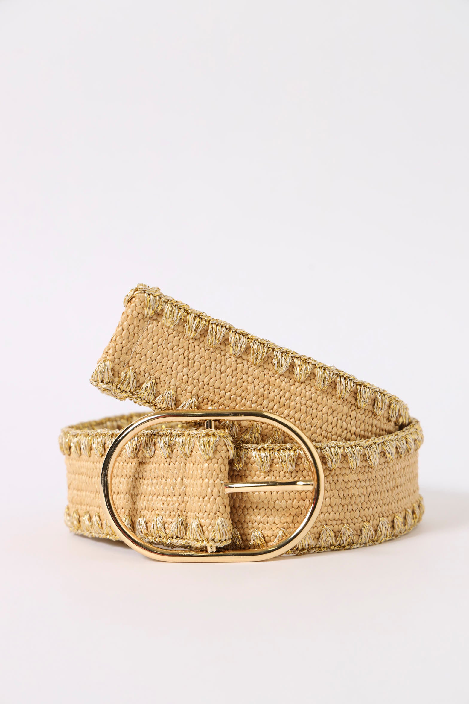 Woven from natural straw with charming whipstitched detailing, this belt brings effortless texture to any outfit. Perfect for adding a casual, summery vibe to dresses, linen pants, or oversized shirts. The neutral tone pairs with virtually everything in your wardrobe, making it a versatile accessory that works from beach days to weekend brunches. Lightweight and comfortable, it's the kind of belt that makes you feel put-together without trying too hard.