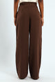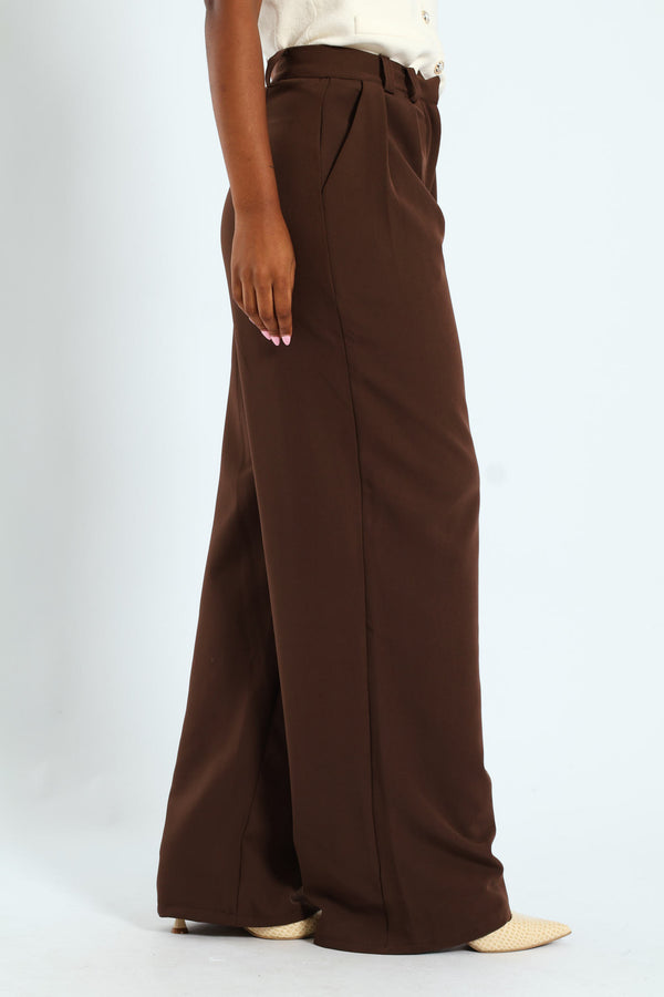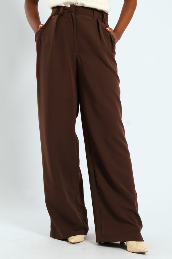 Wideleg Pants With Pleat Detail - Brown
