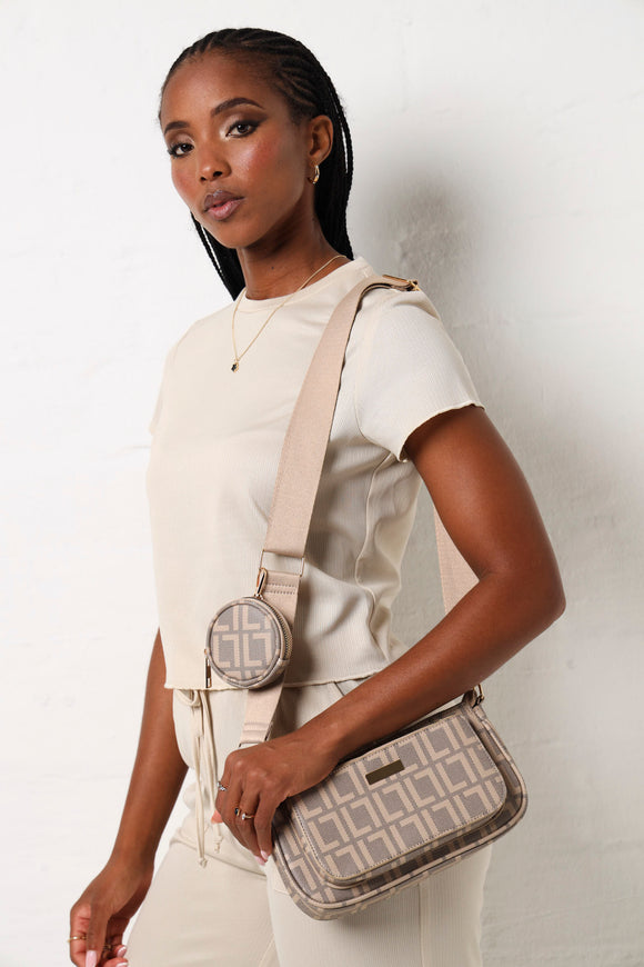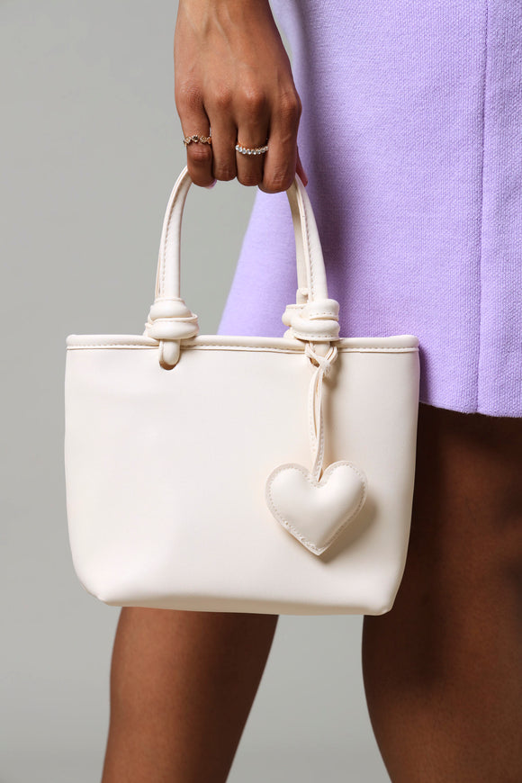 Updated Metal Logo Quilted Satchel Bag - Cream