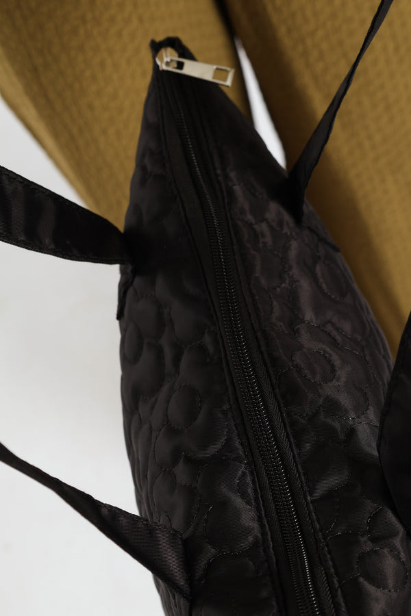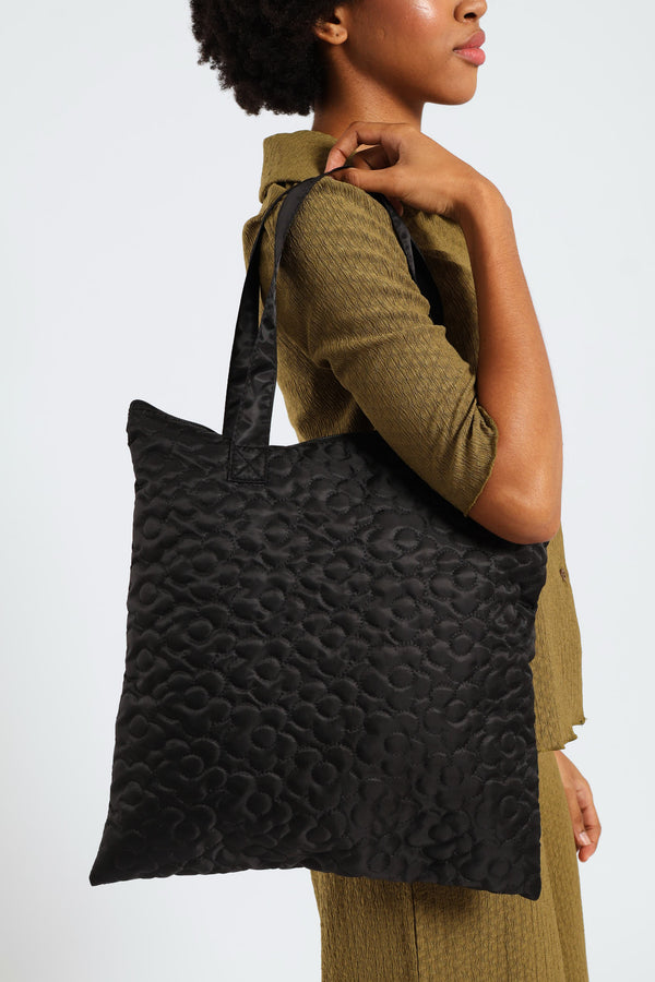 Embroidered Small Flower Nylon Shopper Bag - Black