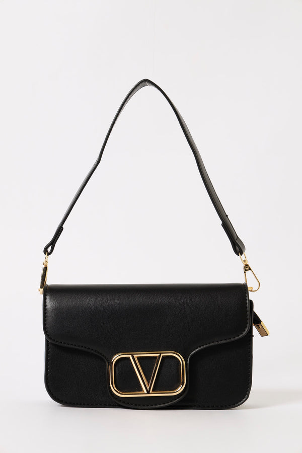 Carry your essentials in style with this sleek black flapover satchel that's equal parts practical and chic. The signature logo buckle adds a touch of sophistication and instantly elevates your everyday carry, while the structured satchel silhouette keeps everything organized and accessible. The flapover design provides security and a polished finish that works with any outfit, from office wear to weekend adventures. Spacious enough for your daily must-haves yet compact enough to feel effortless, this bag is the perfect companion for anyone who refuses to compromise on style or function. The timeless black hue ensures it pairs with everything in your wardrobe, making it a true investment piece. Sling it over your shoulder and feel instantly put-together, no matter where the day takes you.