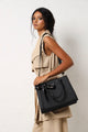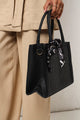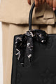 Carry your essentials in style with this spacious tote that's equal parts practical and chic. The embossed monogram detail adds a personalized touch, while the elegant scarf accent elevates your everyday look. Perfect for work, weekend adventures, or spontaneous shopping sprees this black beauty is your new go-to bag. Durable, versatile, and undeniably fabulous.