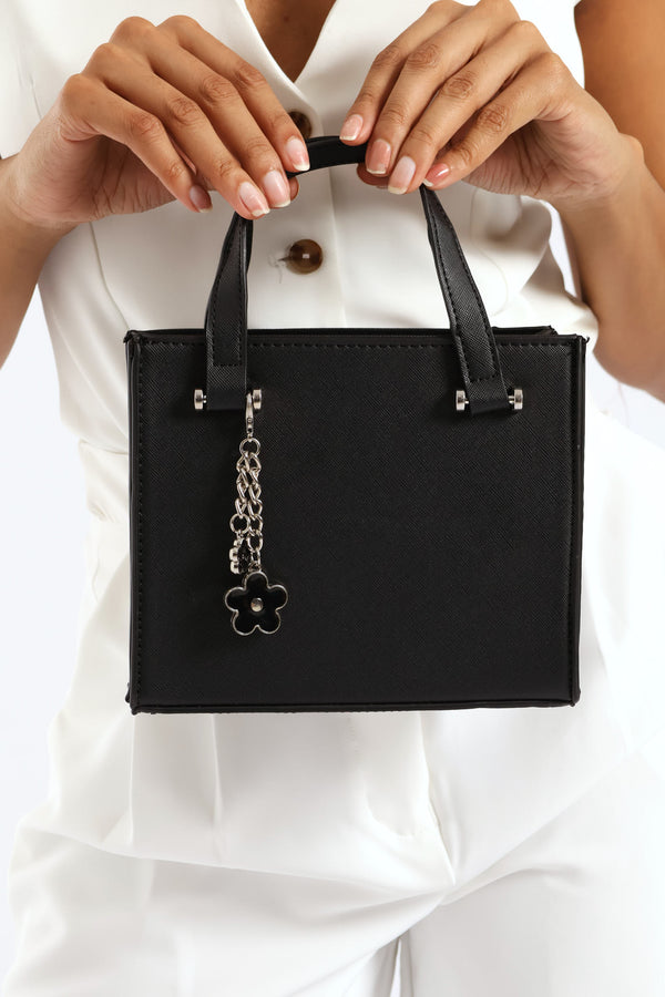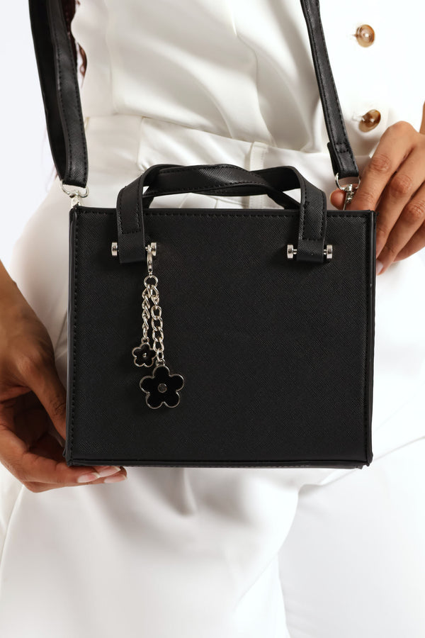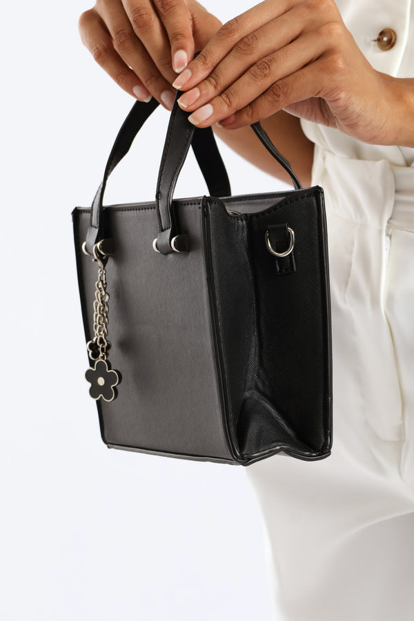 Metal Bar Perspex Flower Charm Tote Bag - Black