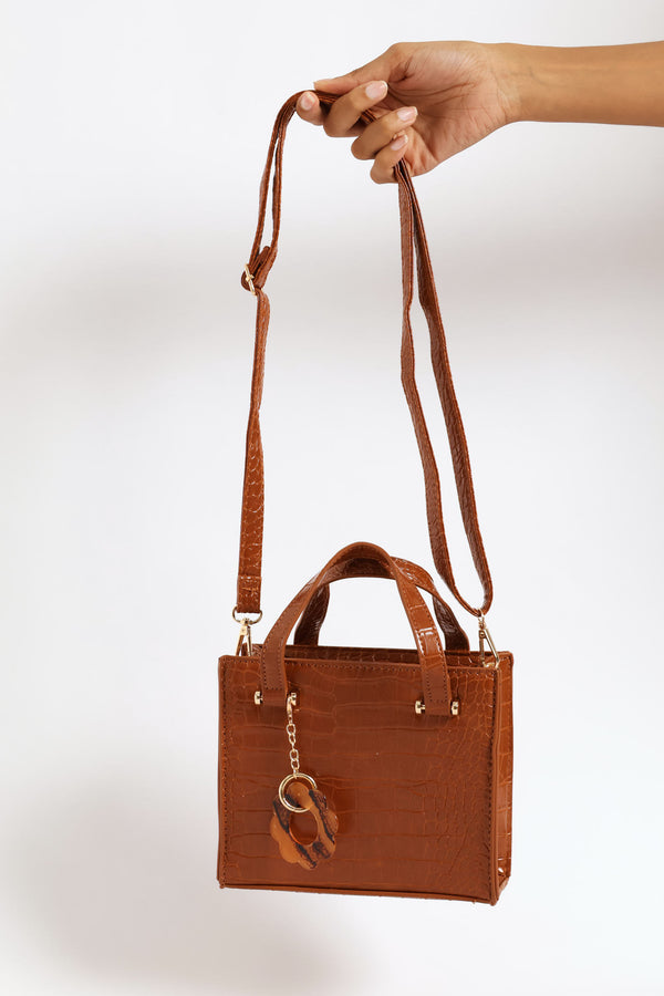 Metal Bar Trim And Charm Detail Mini Tote Bag - Tan