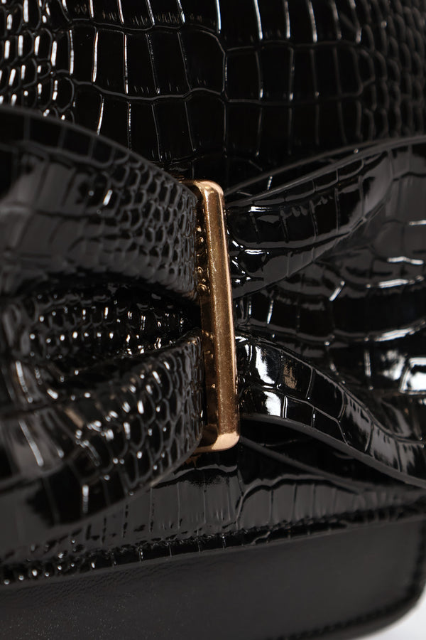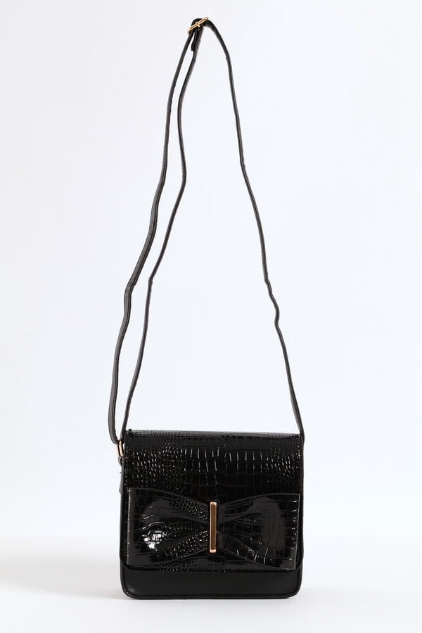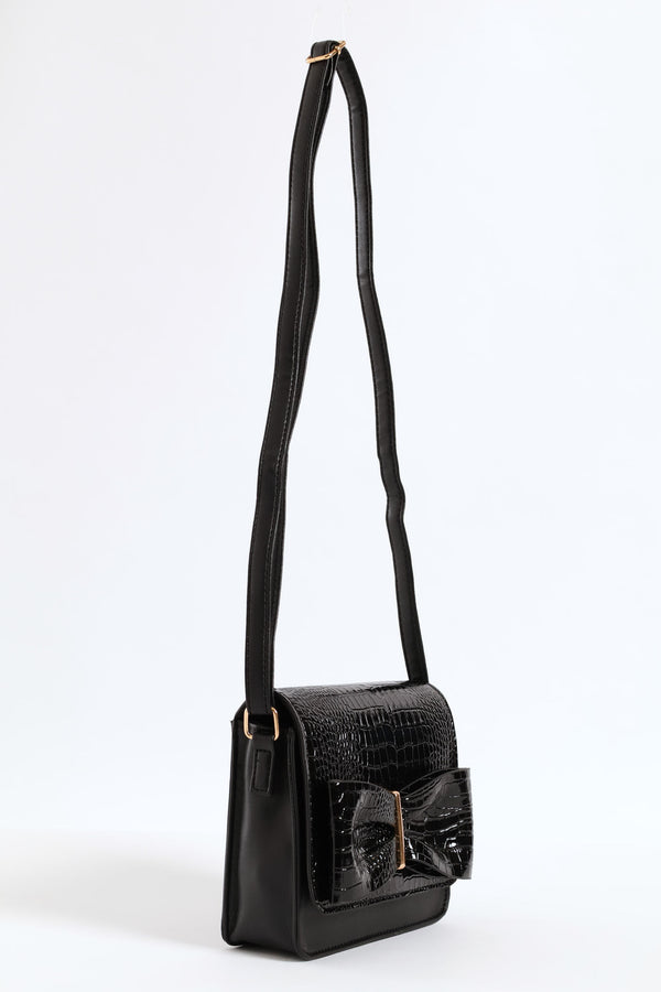 Add a touch of charm to your outfit with this Black Satchel Bag featuring a fun metal front bow. Compact yet spacious, it's perfect for carrying your essentials while keeping your style playful and chic. Ideal for day-to-night adventures, this bag combines practicality with a cute twist!