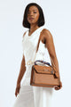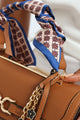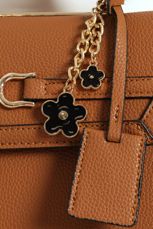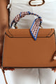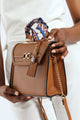 Metal Trim Epoxy Charm & Scarf Detail Bag - Tan