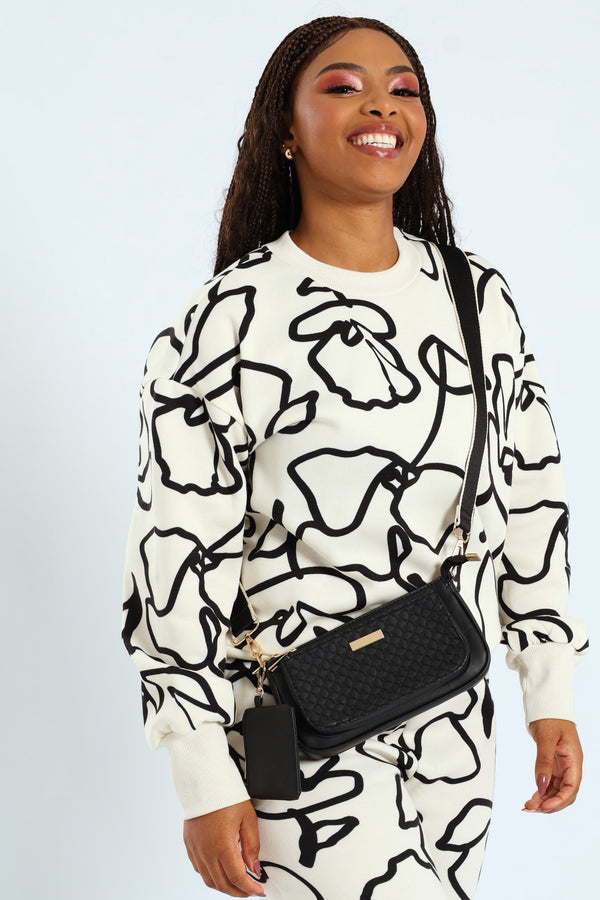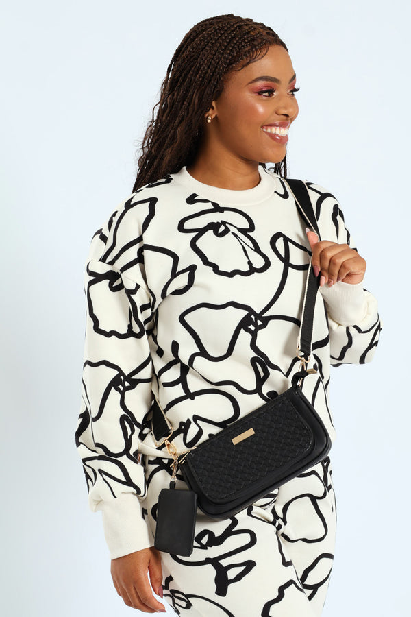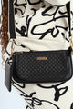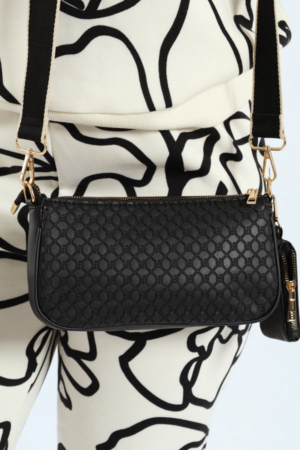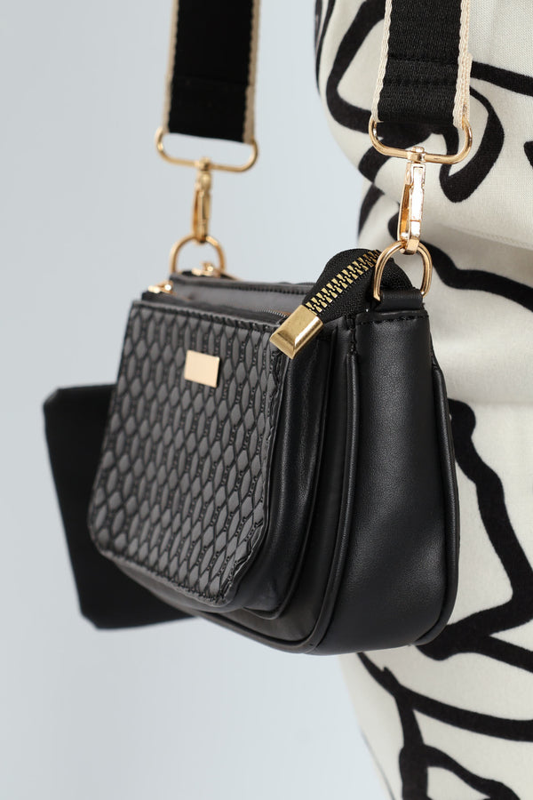Embossed Double Compartment Crossover Satchel Bag - Black