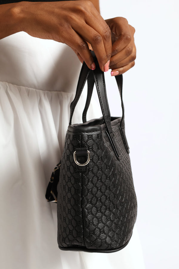 Updated Monogram Satin Scarf Bow Charm Tote Bag - Black/Silver