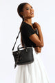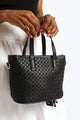 Add a touch of fun elegance to your outfit with the Updated Monogram Satin Scarf Bow Charm Tote Bag in Black and Silver. This charming tote pairs sleek black tones with shimmering silver accents, topped off by a playful satin scarf bow for a unique flair. Spacious enough for your essentials, it’s the perfect blend of style and practicality to brighten your day wherever you go!