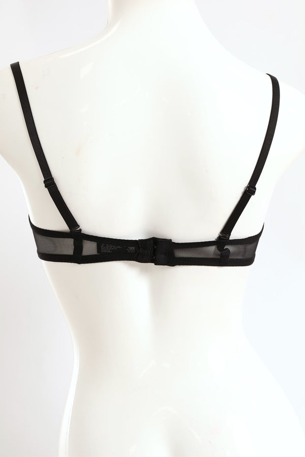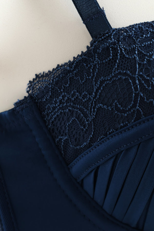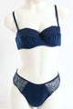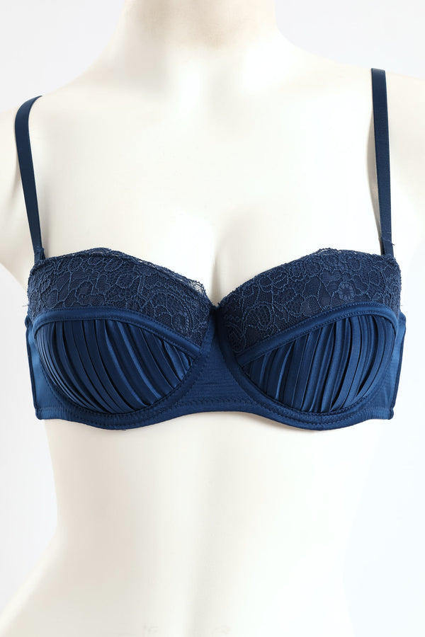 2 Pack Pleated Satin & Lace Balconette Bra - Black/Blue Pansy