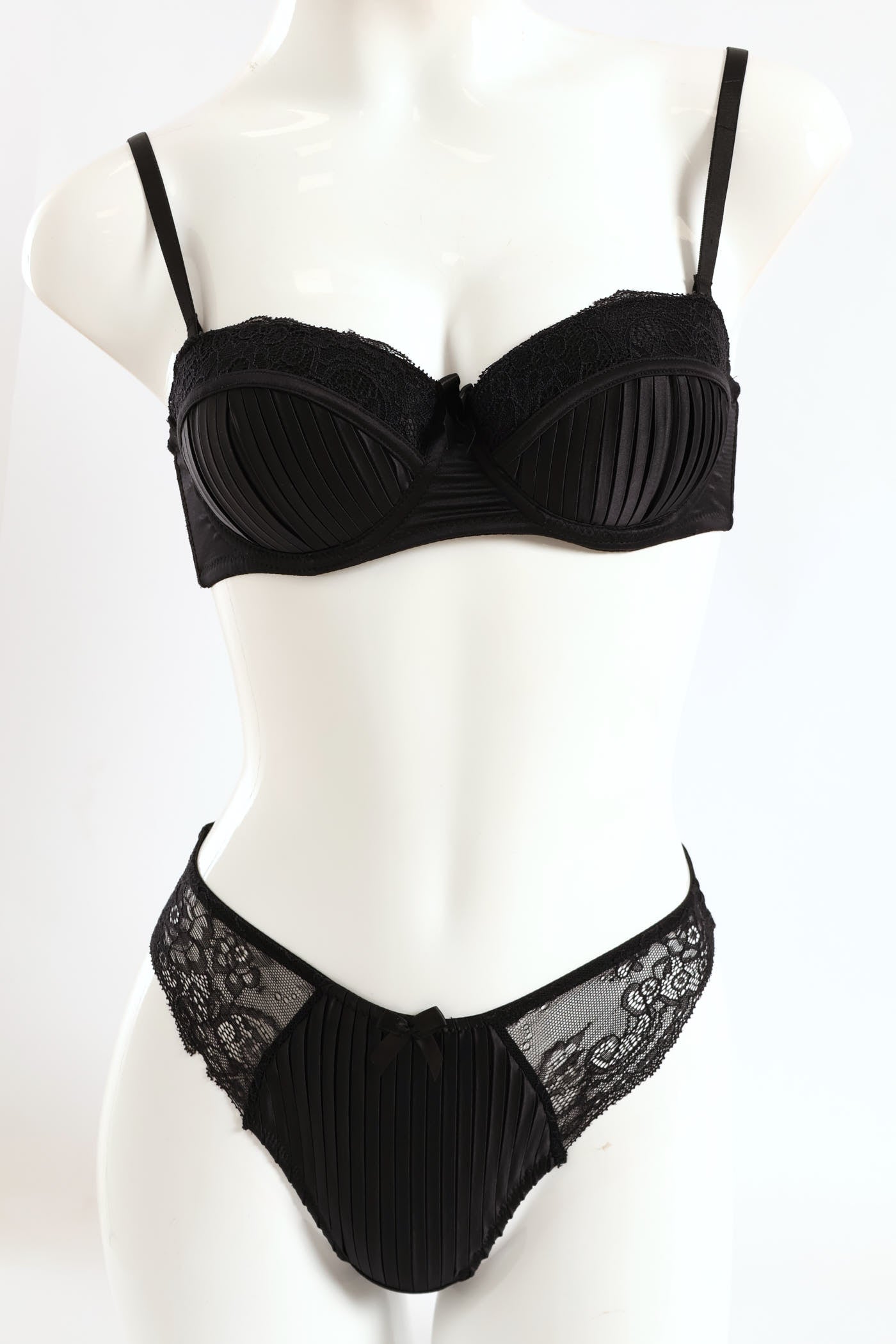 Add a touch of flirtatious charm with this 2 Pack of Pleated Satin & Lace G-Strings in Black and Blue Pansy. Featuring delicate pleated satin and intricate lace detailing, these g-strings combine comfort with a playful, seductive style. Perfectly designed as part of a matching set, 2 Pack Pleated Satin & Lace Balconette Bra, they’ll brighten your lingerie collection with a hint of fun and elegance.