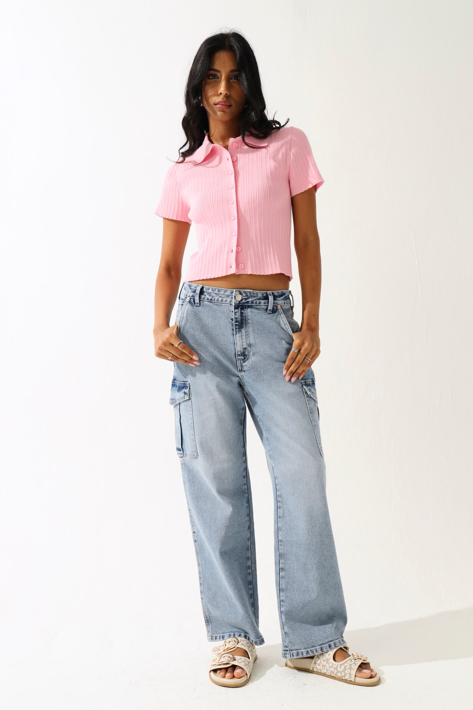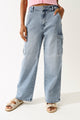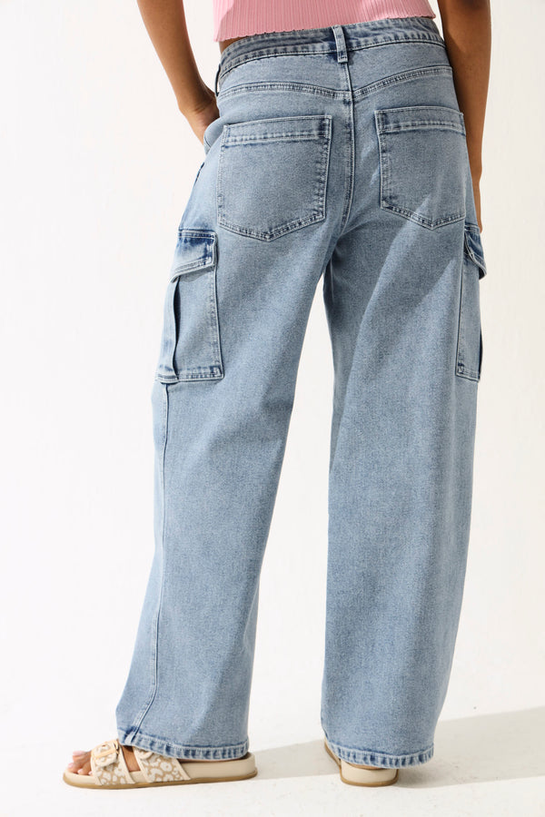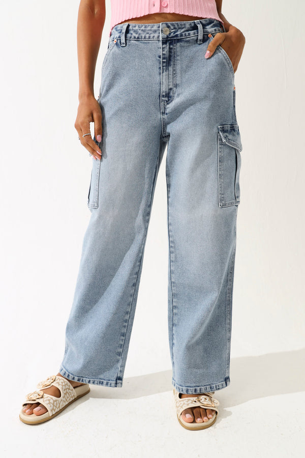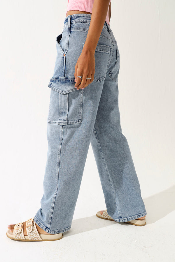 Bring back the best of the '90s with these stonewash cargo straight leg jeans that are pure nostalgia with a modern twist. The utilitarian cargo pockets add function and attitude, while the straight leg silhouette keeps things timeless and flattering. That iconic stonewash finish gives off major retro vibes that feel fresh and current all at once. Style them with chunky sneakers and a crop top, or dress them up with a fitted blazer—these jeans are your ticket to effortless, playful style that never goes out of fashion.