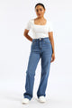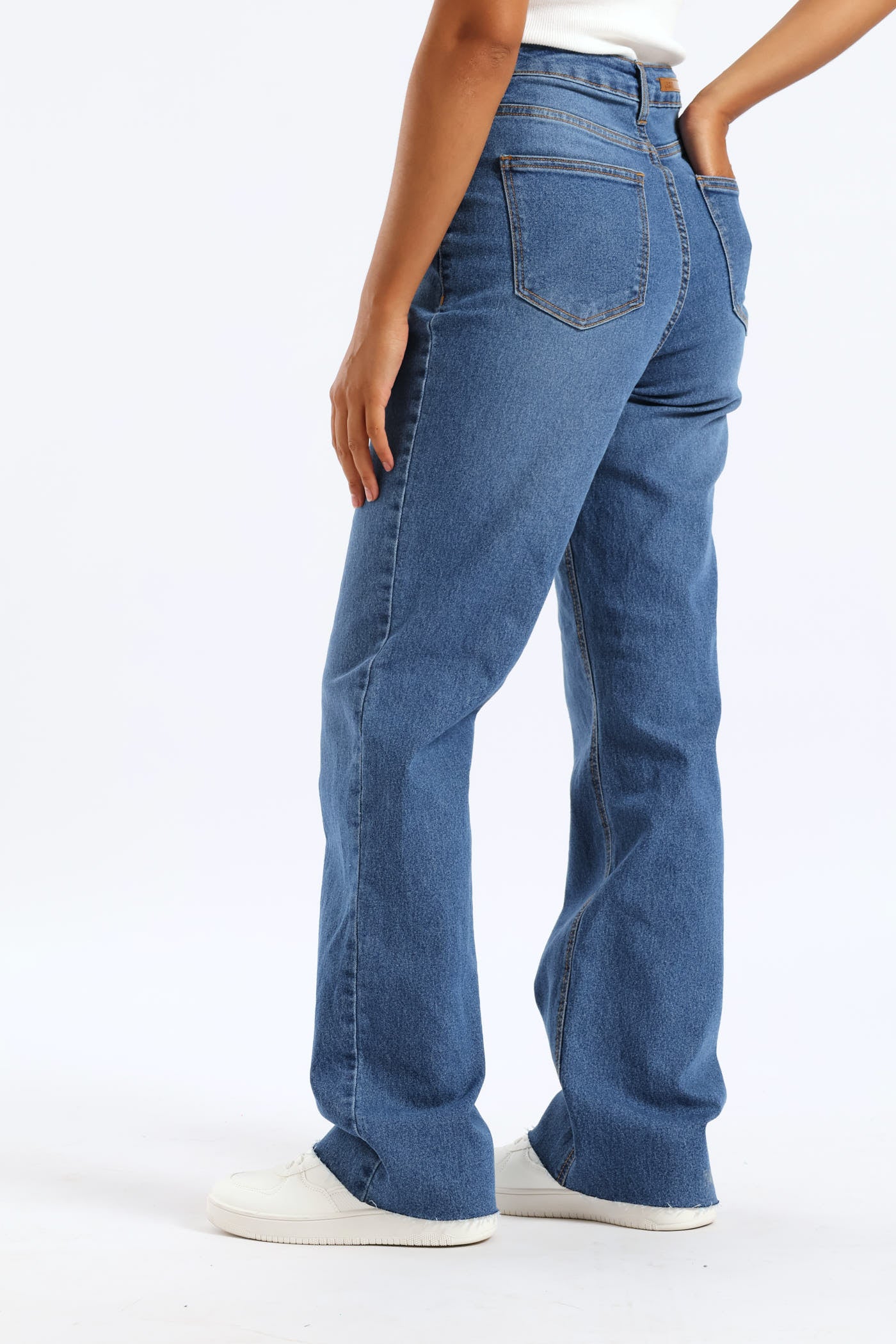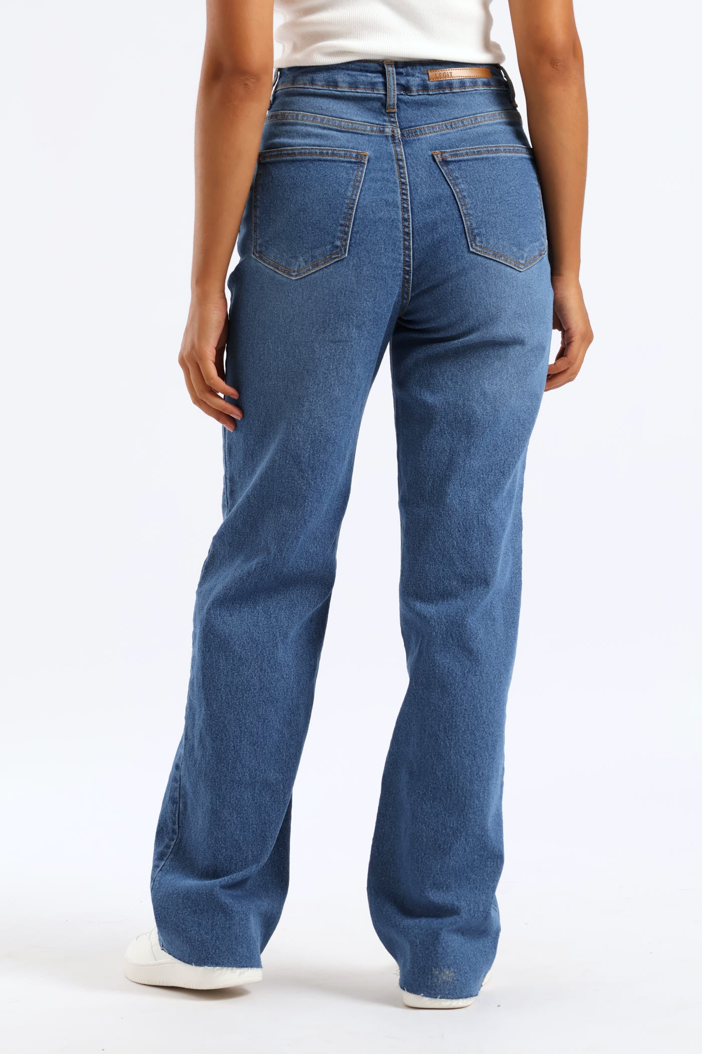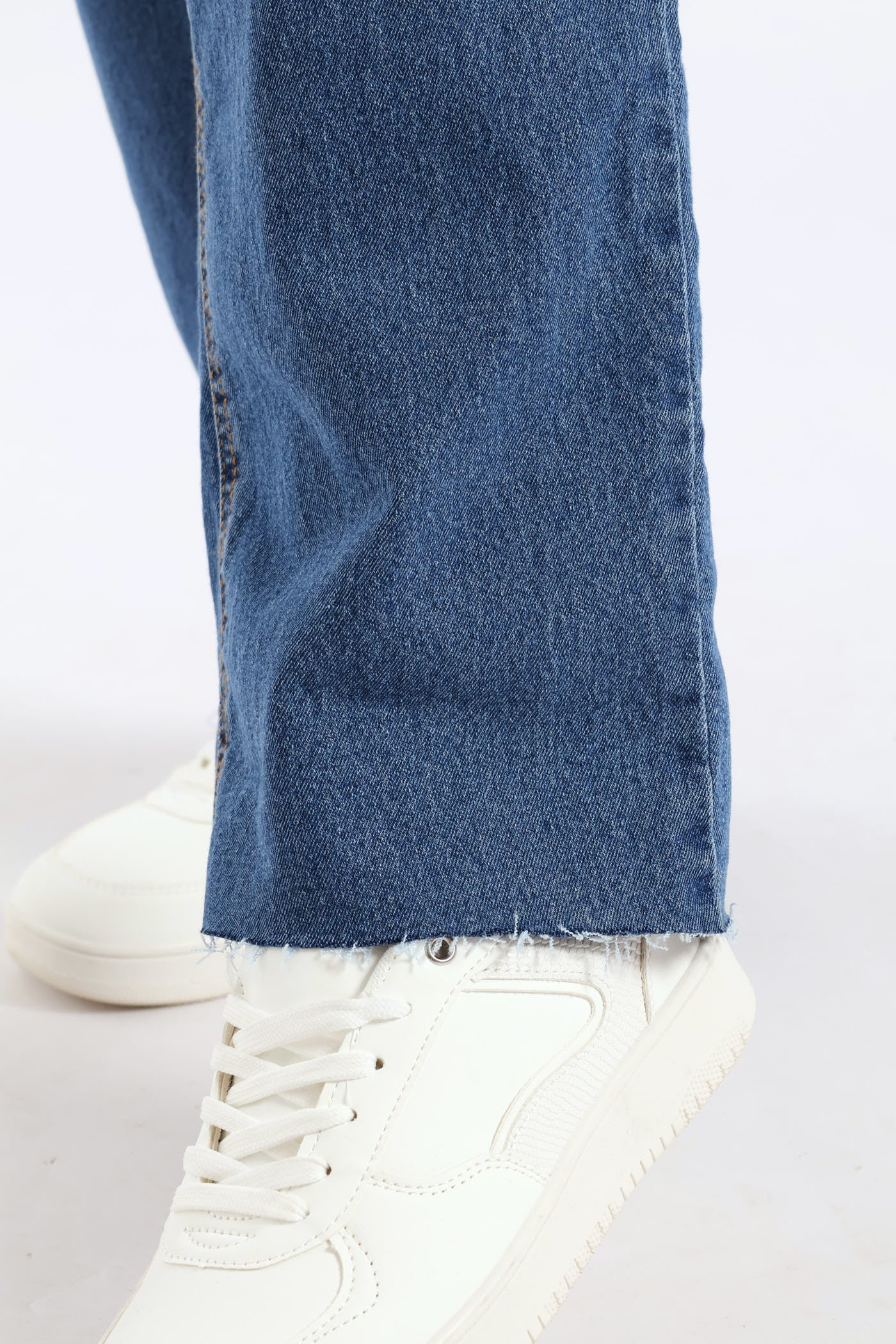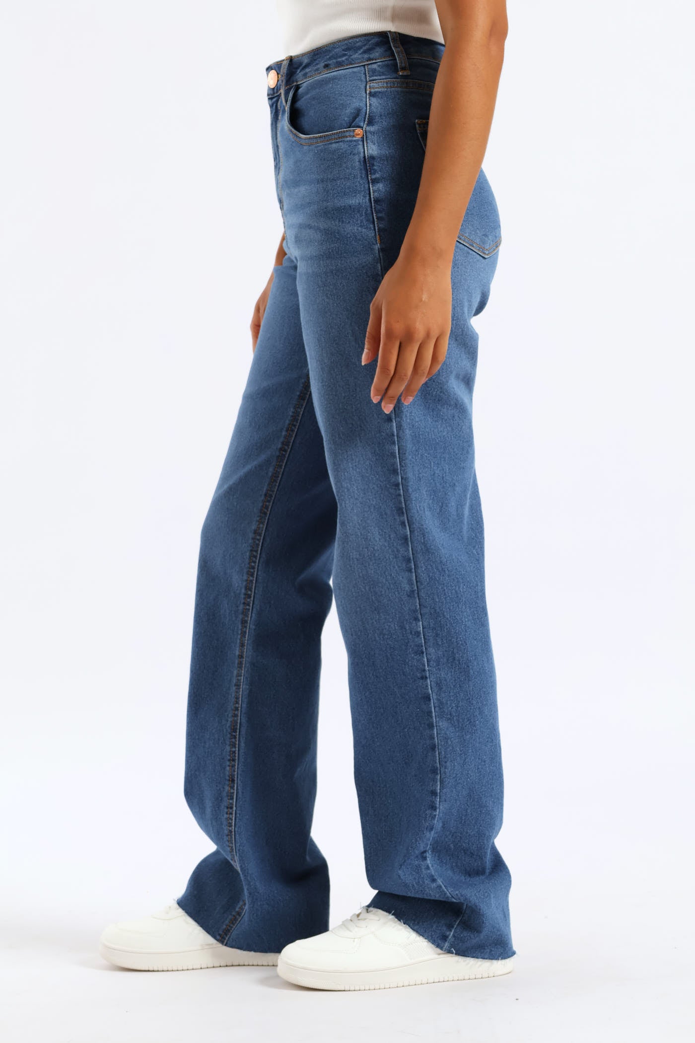 Basic Raw Hem Wide Leg Jean - Medium Wash