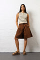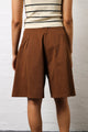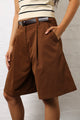 Belted Pleat Front Bermuda Shorts - Chocolate