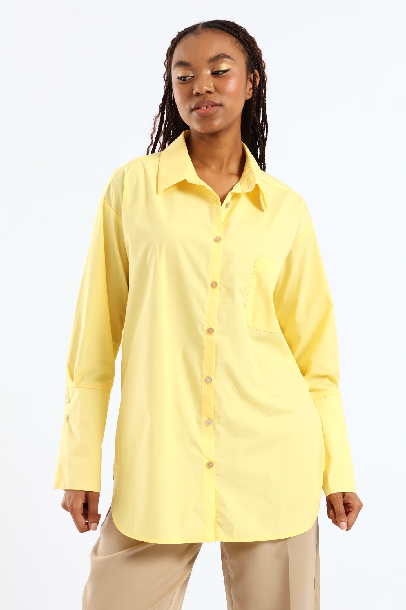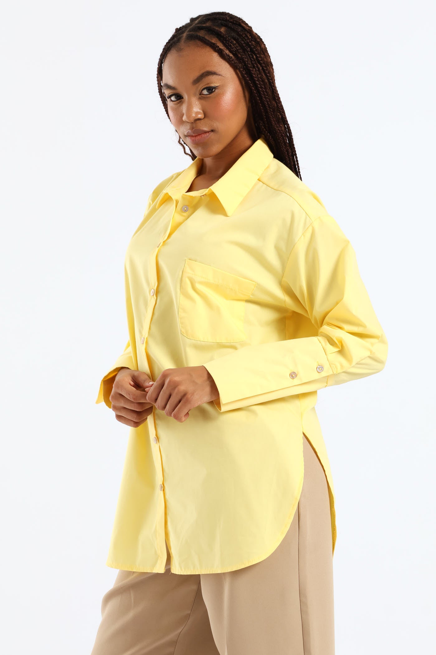 Button Through Oversized Shirt - Yellow