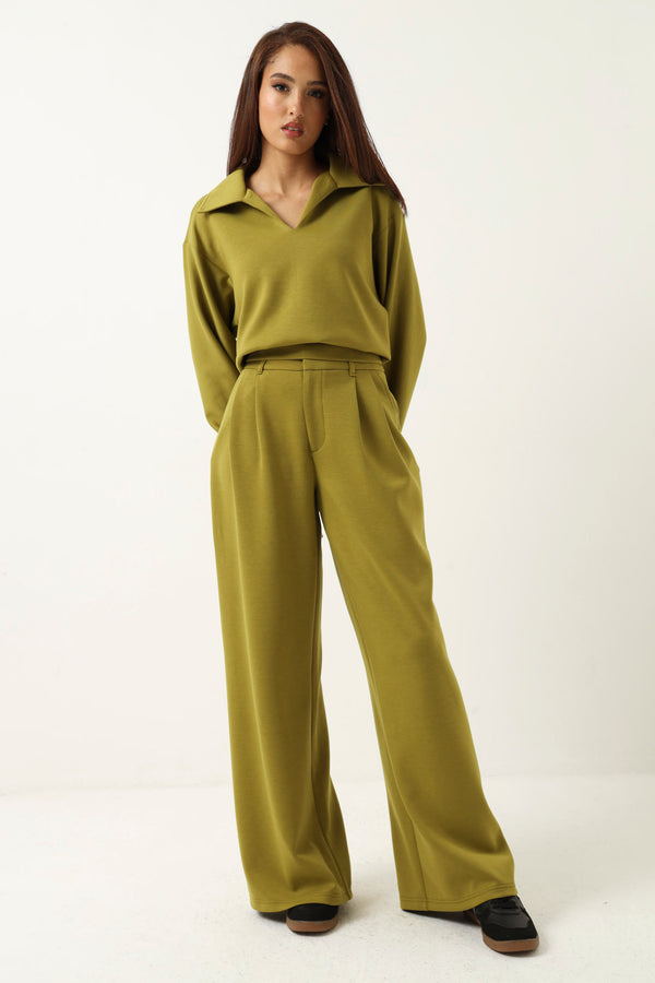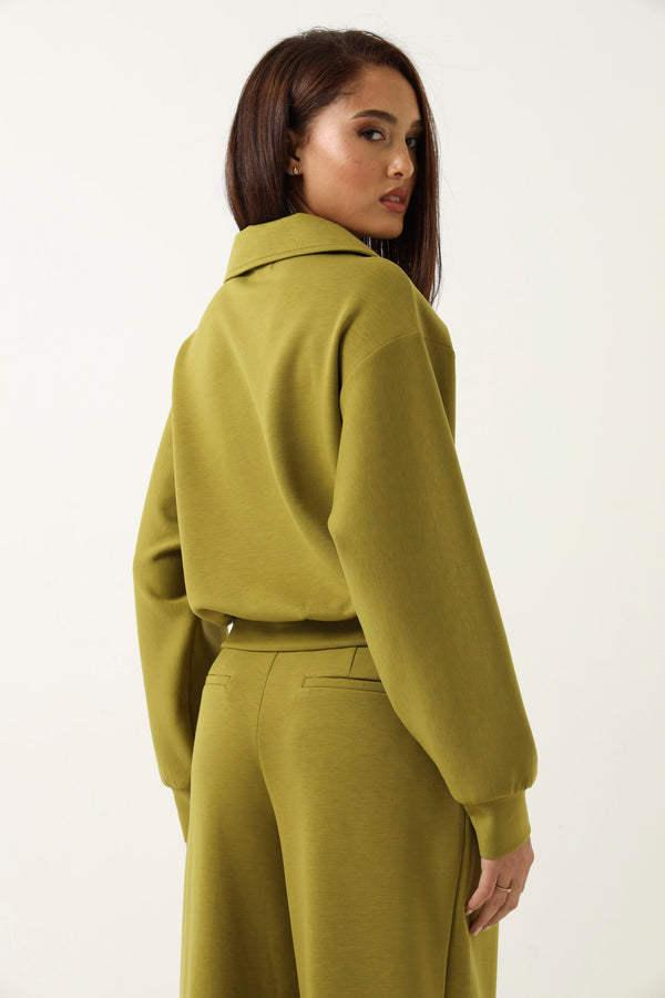 Collared Soft Touch Pullover Top - Chartreuse