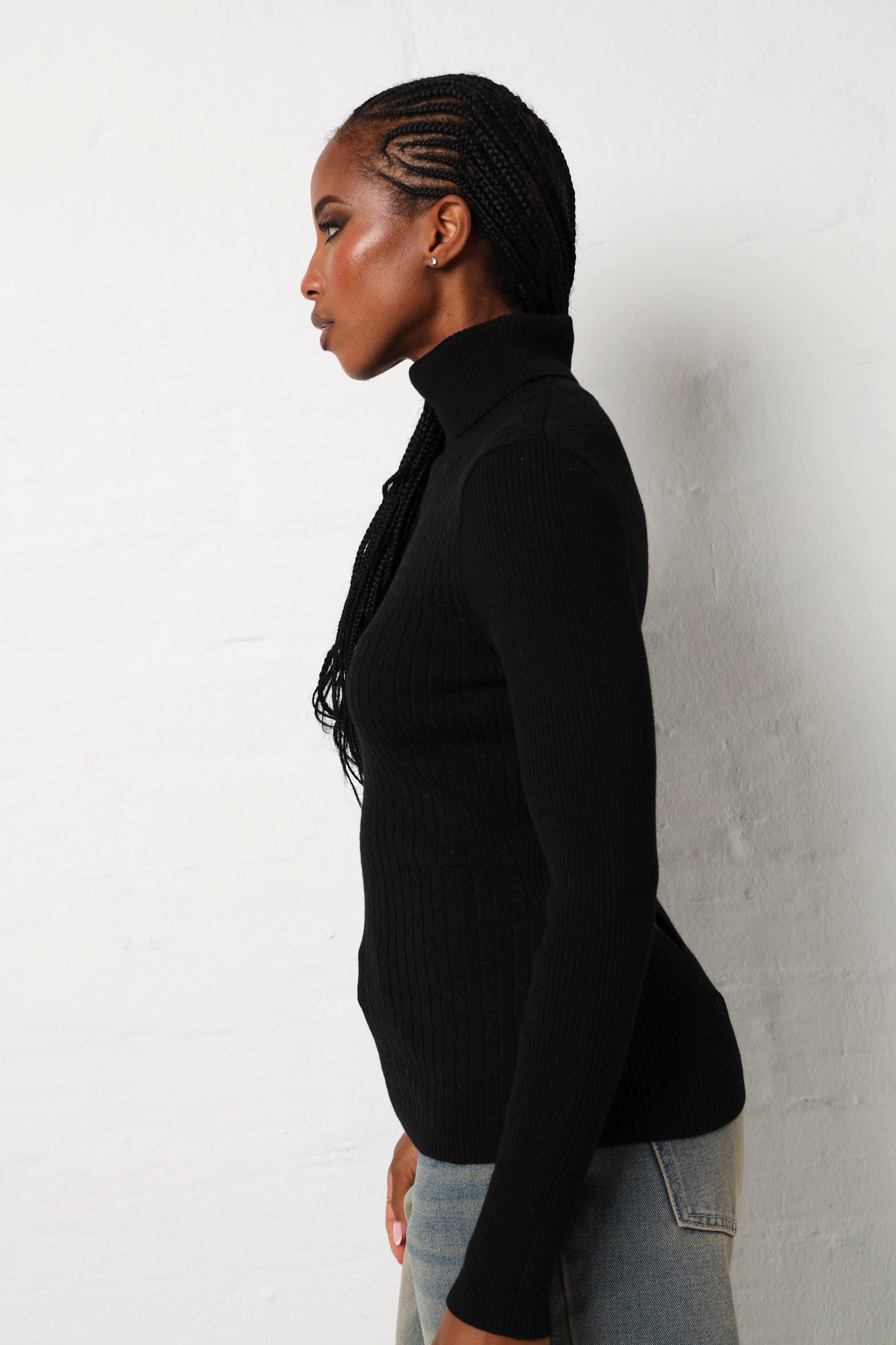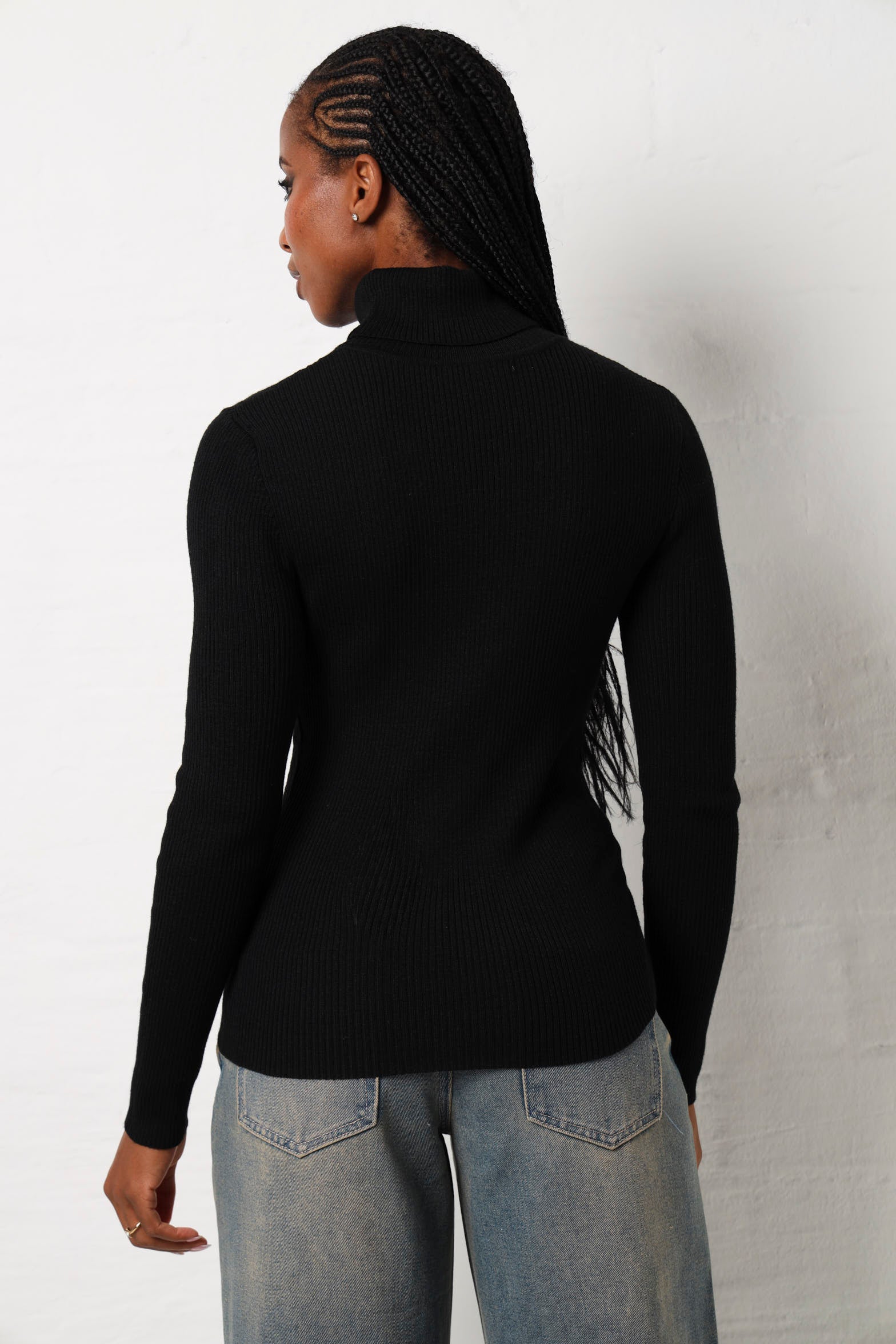 Elevate your everyday wardrobe with this timeless black knitwear essential. Crafted for comfort and versatility, it's the perfect piece to layer, dress up, or keep it casual. Whether you're heading to the office or grabbing coffee with friends, this wardrobe staple has got your back literally and stylishly.