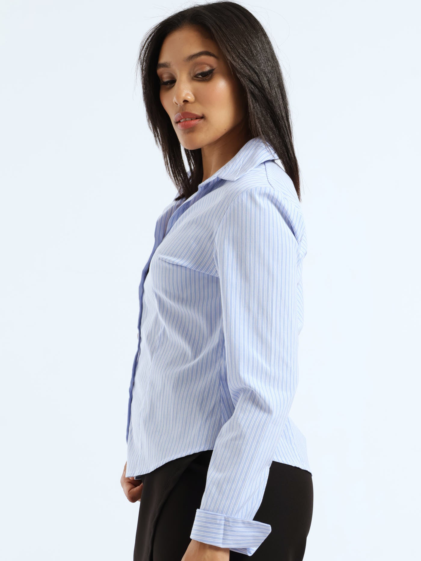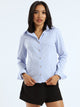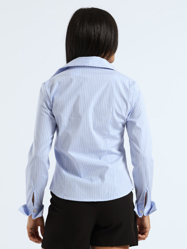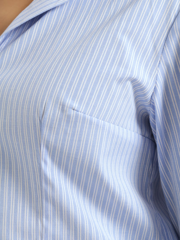Long Sleeve Fitted Stripe Poplin Shirt - White/Blue