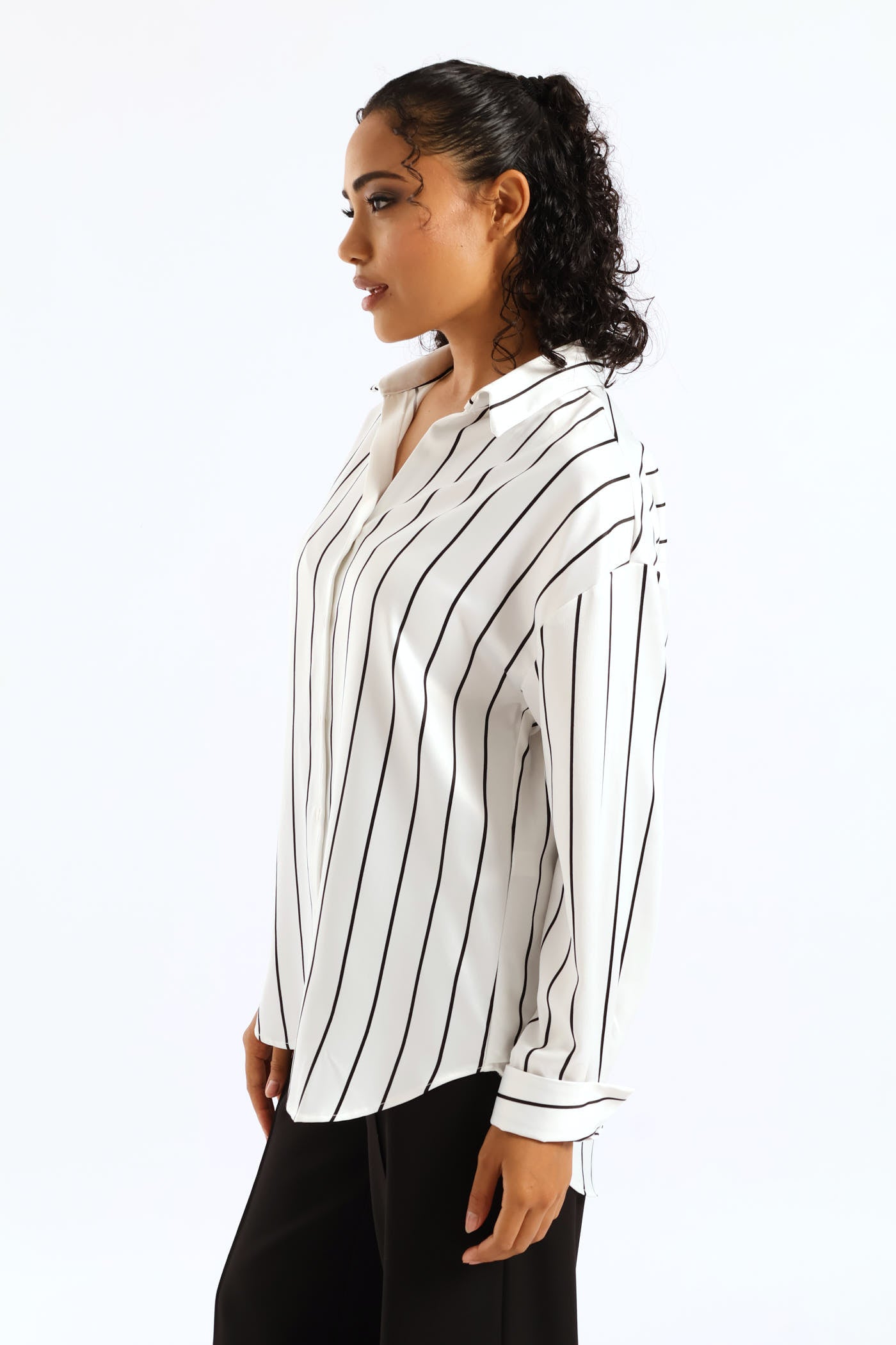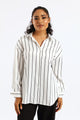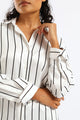 Long Sleeve Satin Stripe Shirt - Cream/Black