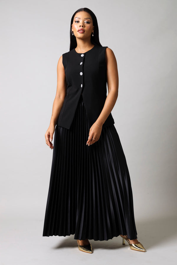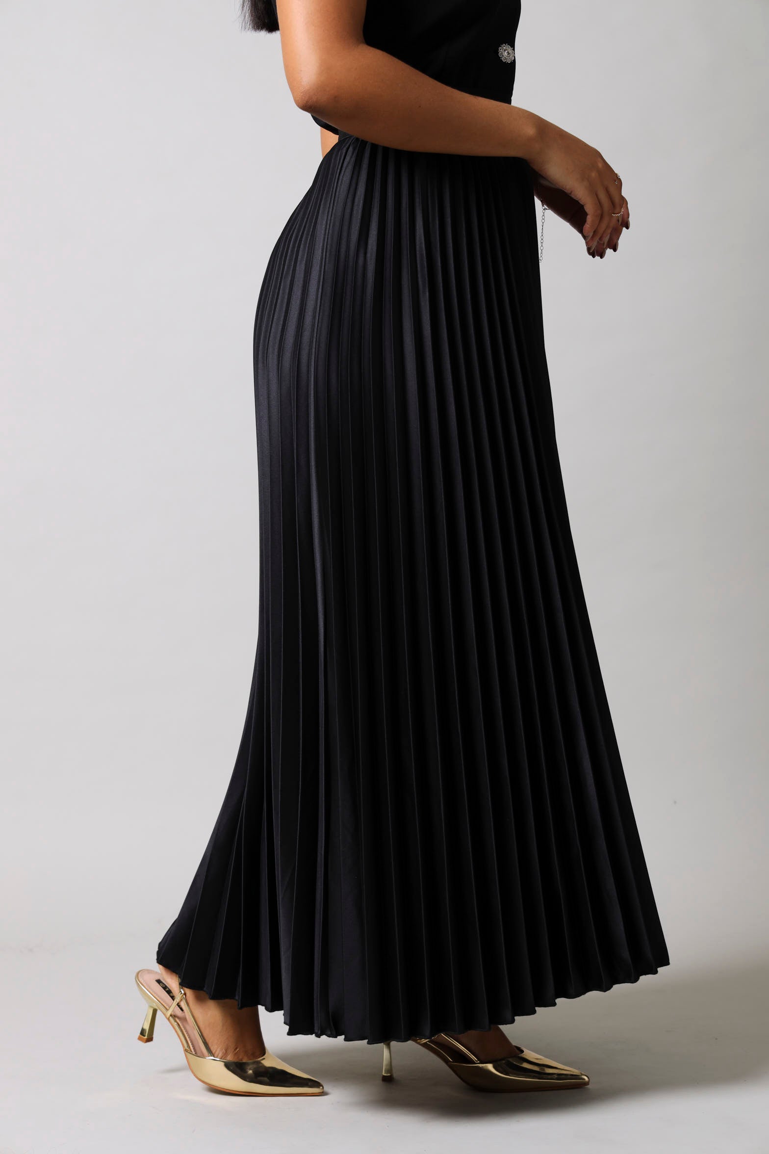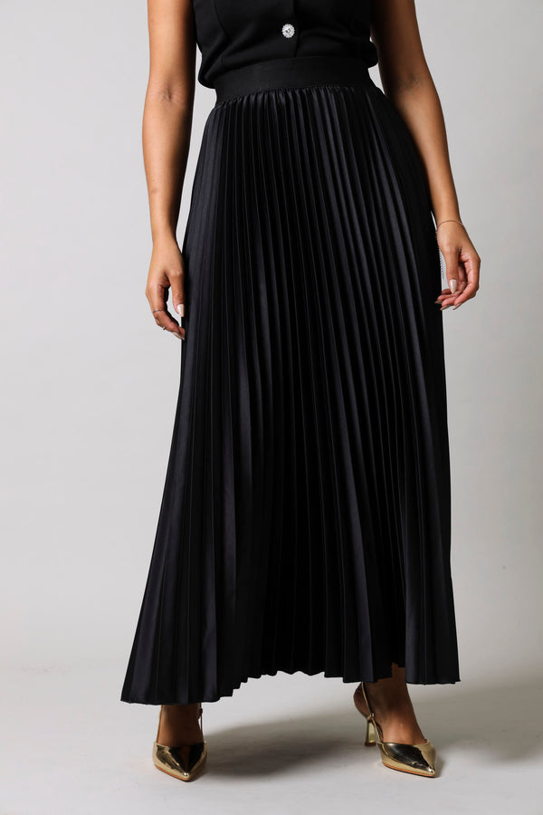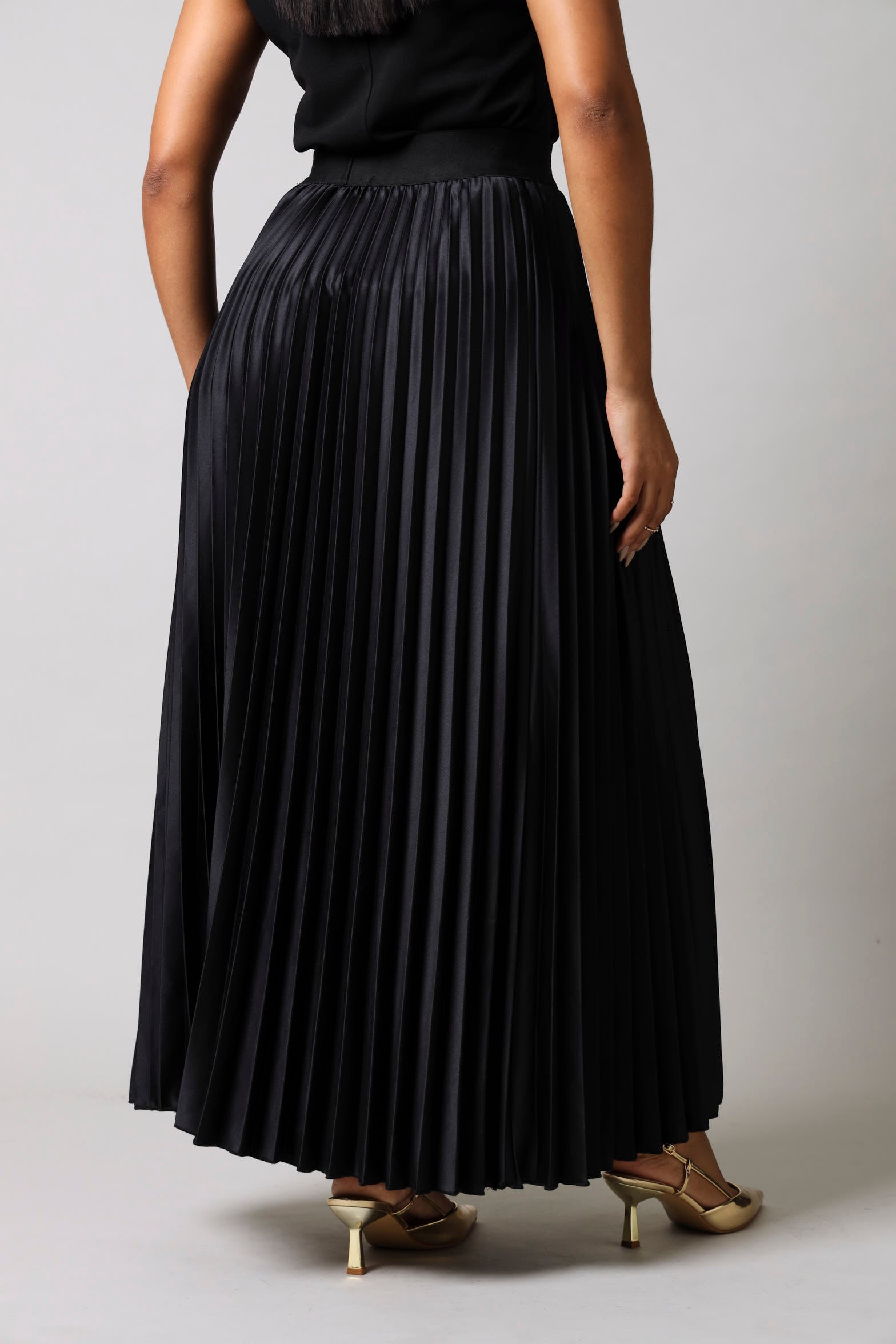 Meet your new go-to skirt—a stunning maxi with graceful pleats that move with you. The elasticated waist means comfort without compromise, so you can wear it all day without thinking twice. In timeless black, it's the ultimate chameleon piece that works with everything from casual tees to fancy blouses. The pleated design adds dimension and flow, giving you that effortlessly put-together vibe whether you're running errands or dressing up for an evening out. Versatile, flattering, and endlessly stylish—this skirt is about to become your wardrobe's best-kept secret.