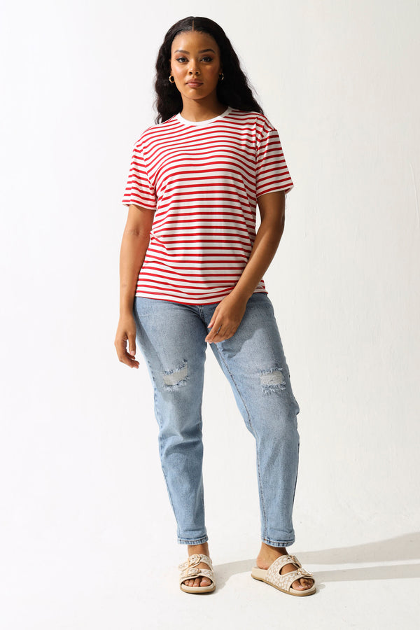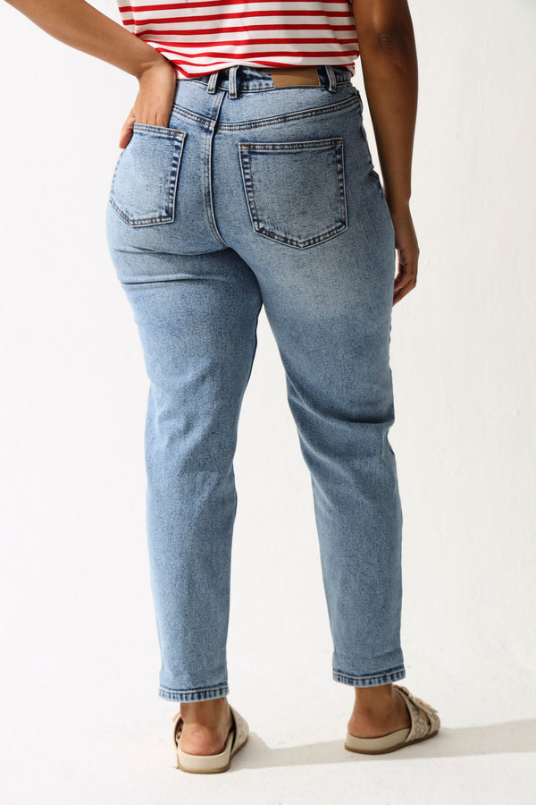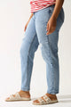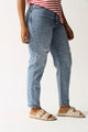 Mended Patch Roll Hem Tapered Mom Jean - Stonewash