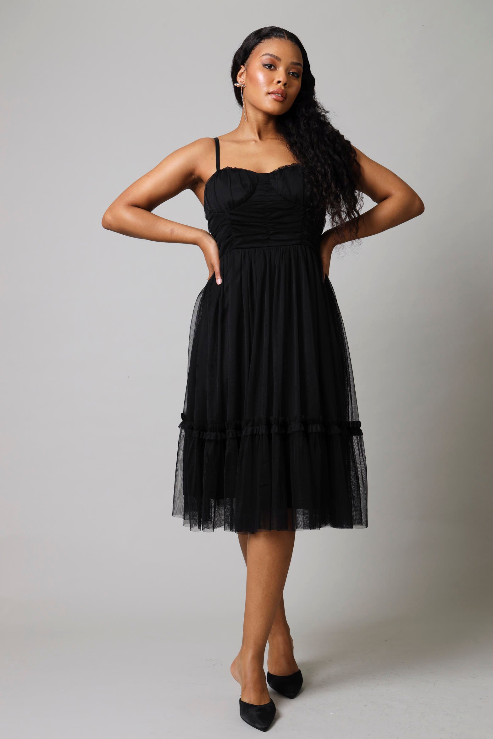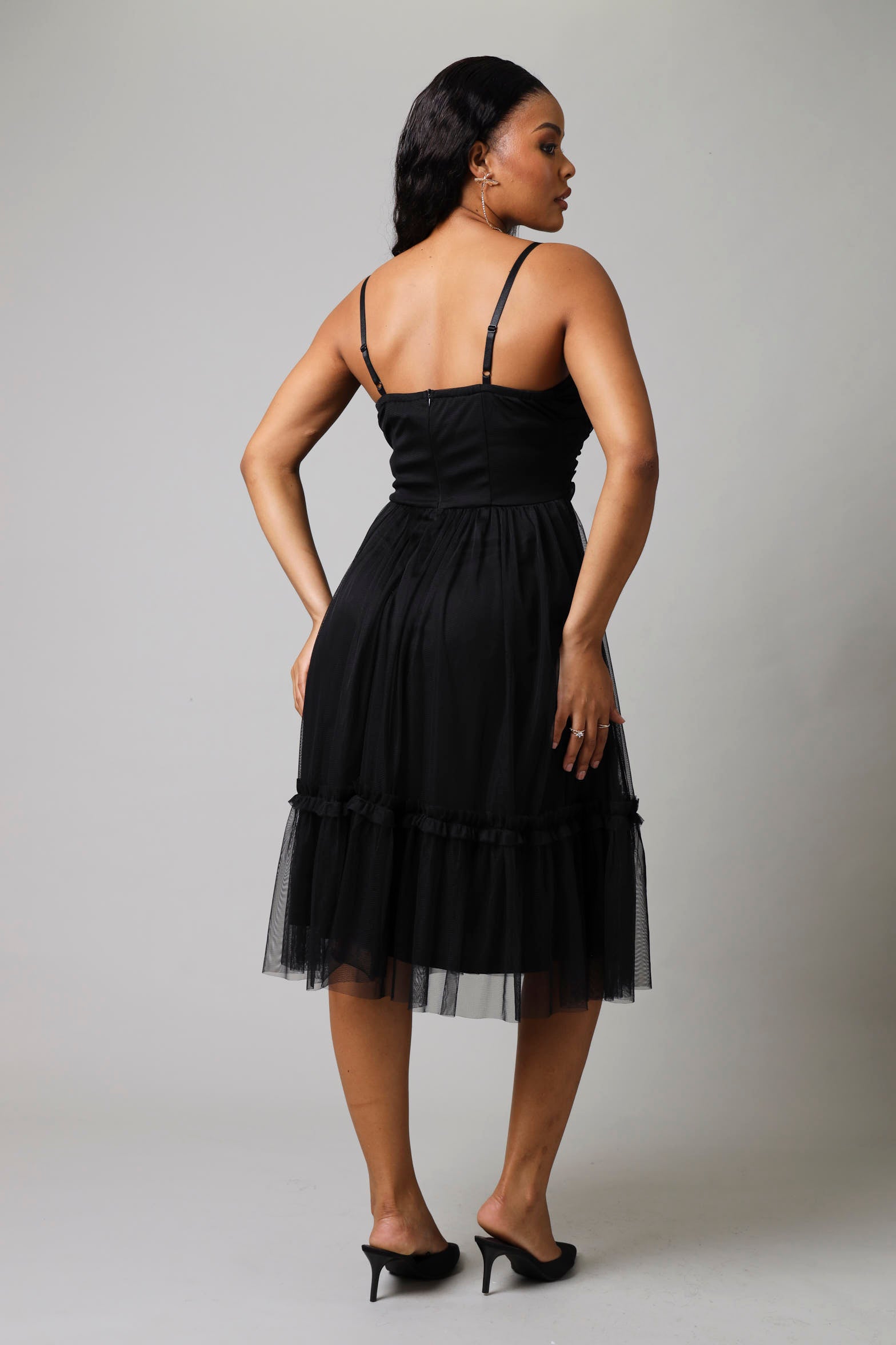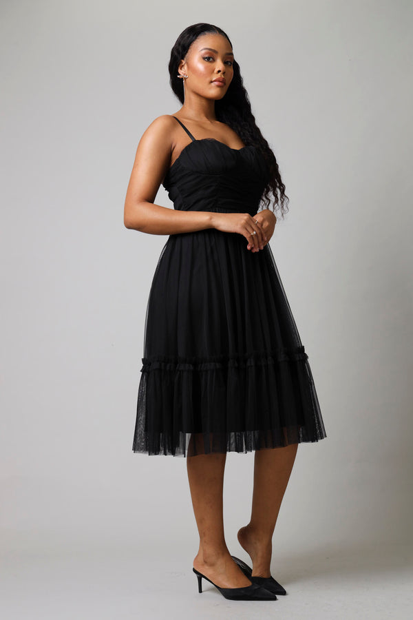 Mesh Gauged Prom Dress - Black