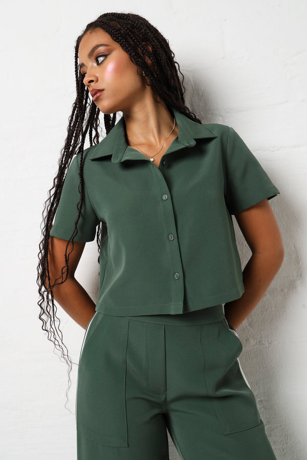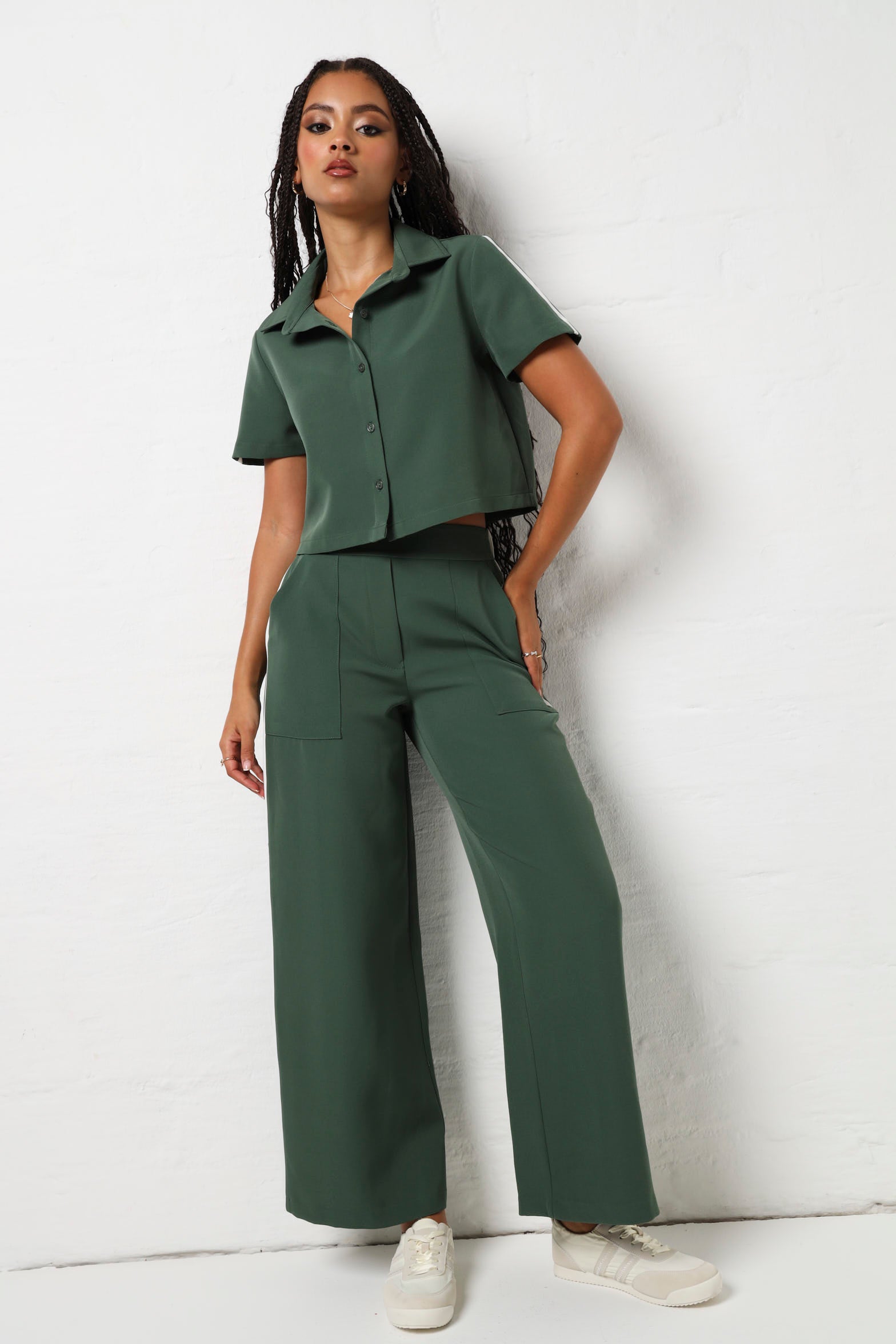 Short Sleeve Side Stripe Button Through Top - Fatigue