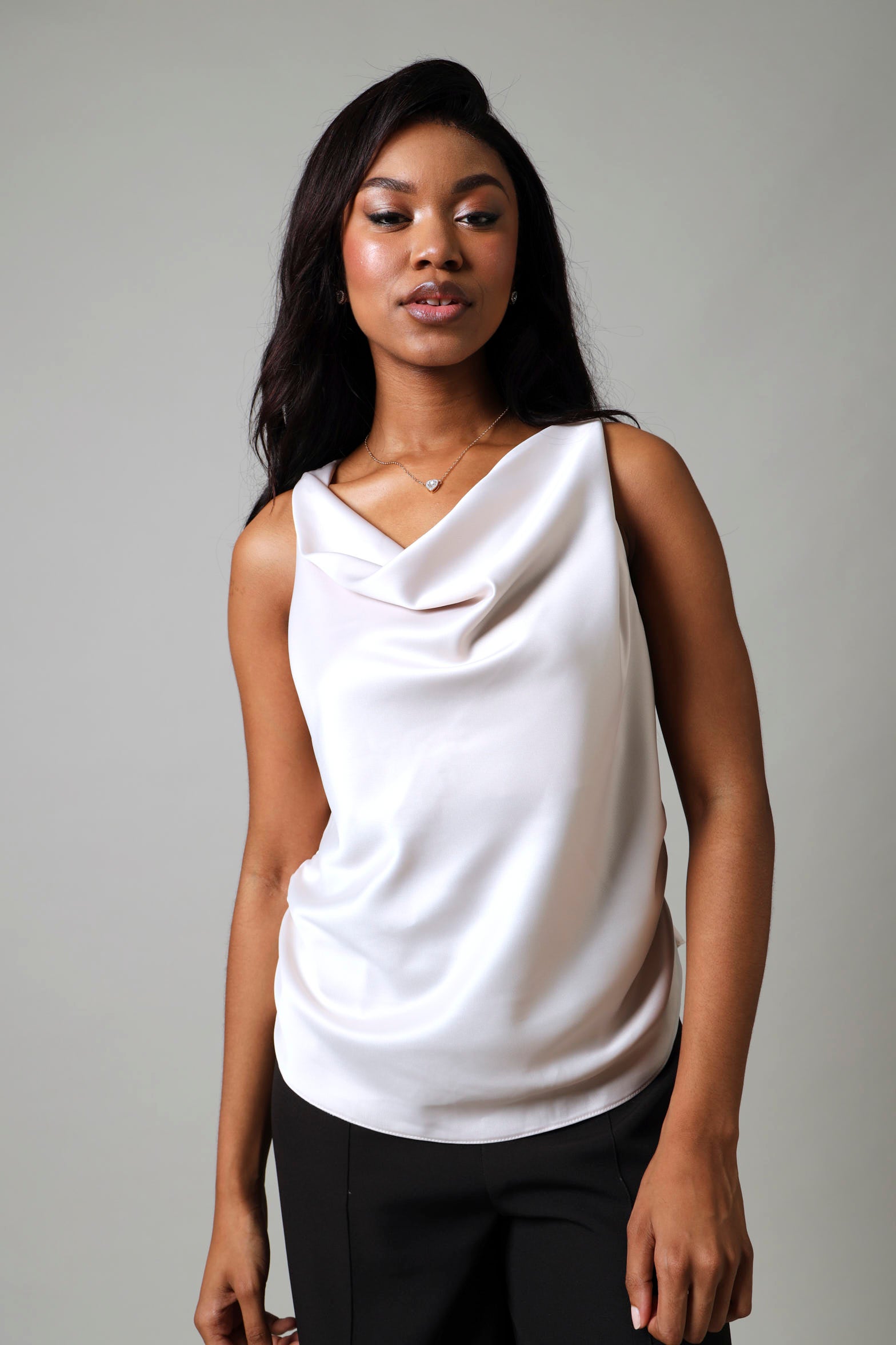 Effortless elegance meets laid-back vibes with this sleeveless cowl neck top in champagne. The draped neckline adds a touch of sophistication while keeping things cool and comfortable—perfect for those days when you want to look polished without trying too hard. Pair it with your favorite jeans, linen pants, or dress it up for a night out. This versatile piece is your new go-to for casual chic that actually feels as good as it looks.