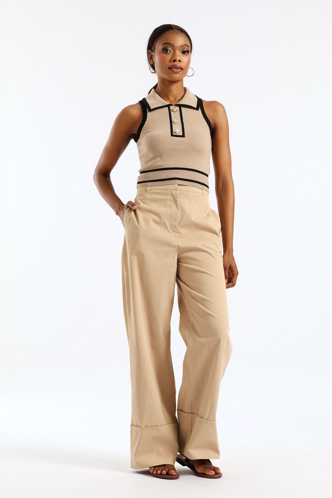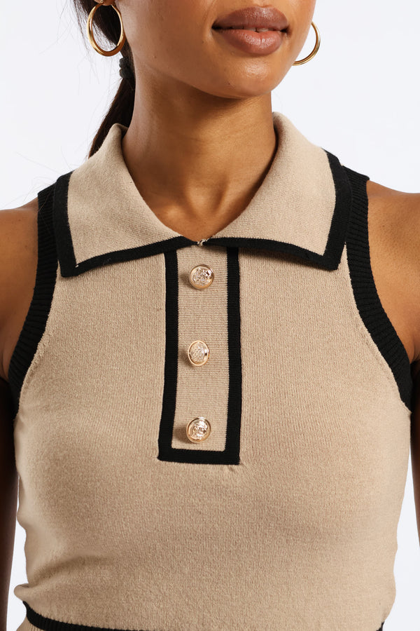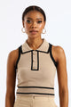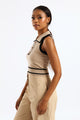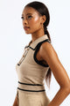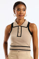 Serve some serious style with this Sleeveless Golfer Crop Knit Top in a versatile stone shade. Its cropped fit and soft knit fabric keep you cool and comfy, while the classic golfer collar adds a sporty twist. Perfect for layering or wearing solo, it’s the playful piece that dresses up your casual looks with a touch of effortless charm.