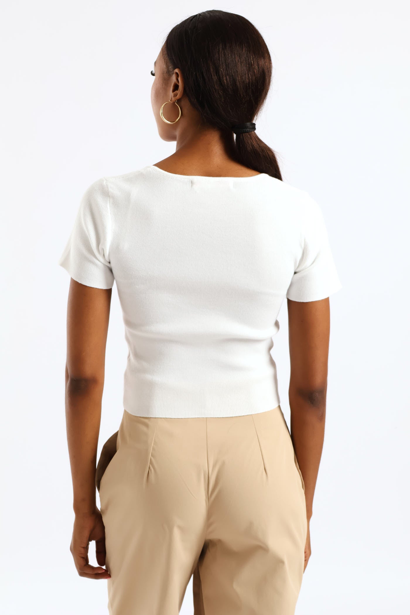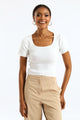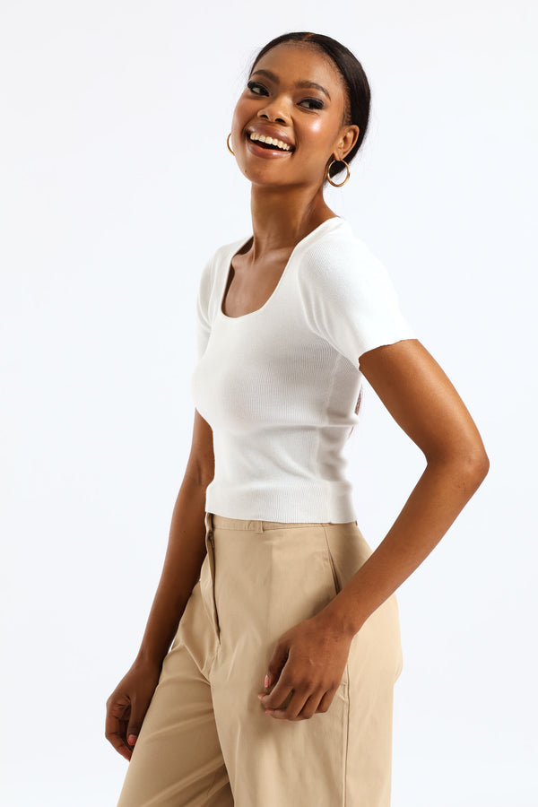 Square Neck Knitwear Tee - White