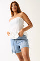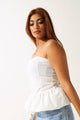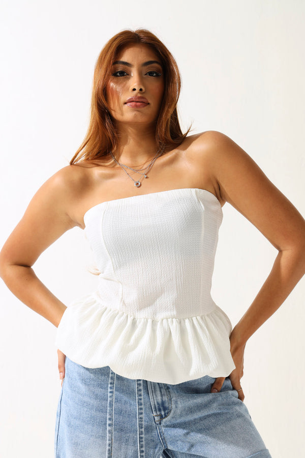 Go bare-shoulder chic with this white strapless crinkle knit top that's effortlessly flirty and endlessly versatile. The textured crinkle knit adds visual interest and dimension while keeping things light and breathable for warm weather wear. The strapless silhouette shows off your shoulders and collarbone beautifully, making it perfect for those moments when you want to feel confident and carefree. Layer it under slip dresses, pair it with high-waisted bottoms, or wear it solo for maximum impact—this top is your go-to for looking casually put-together with zero effort.