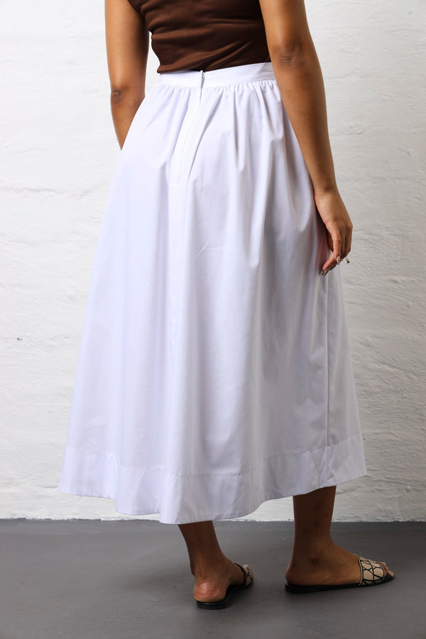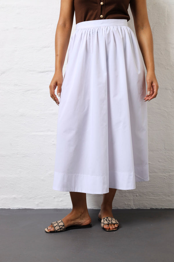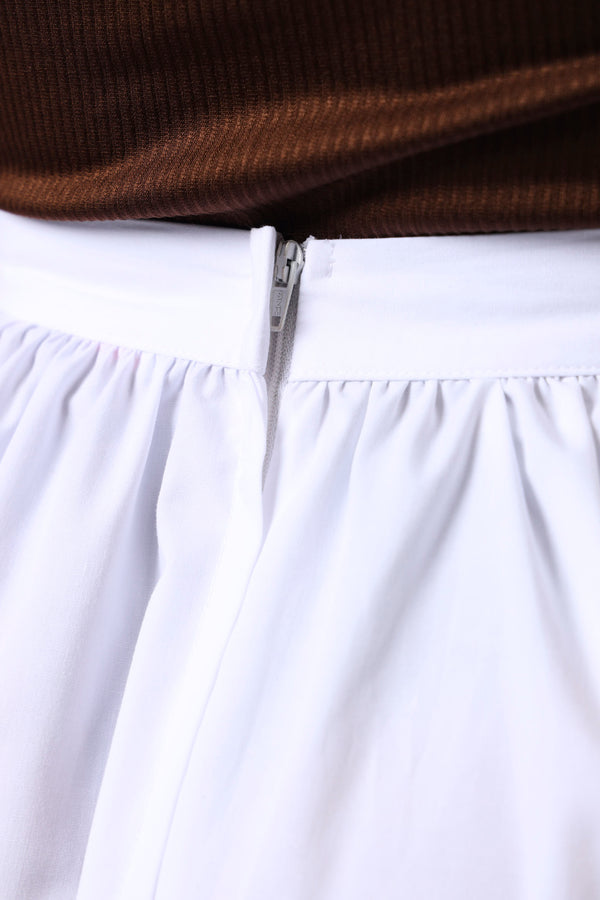 Structured Waist Flare Poplin Skirt - White