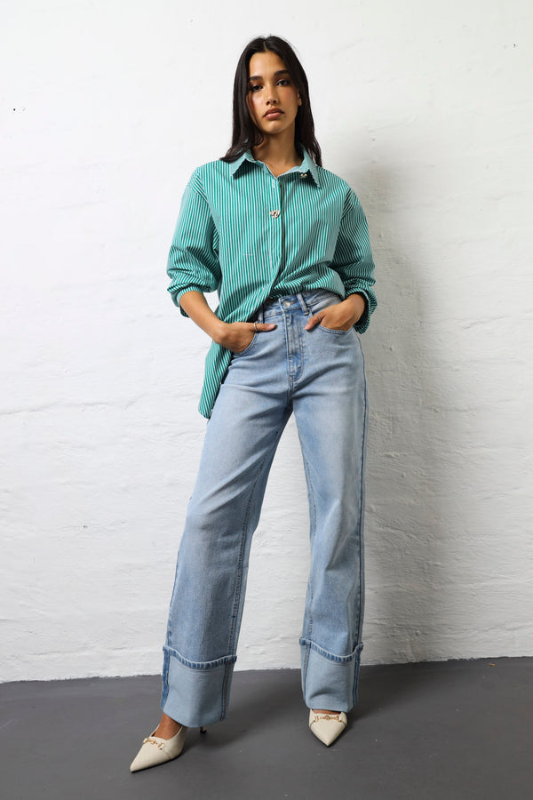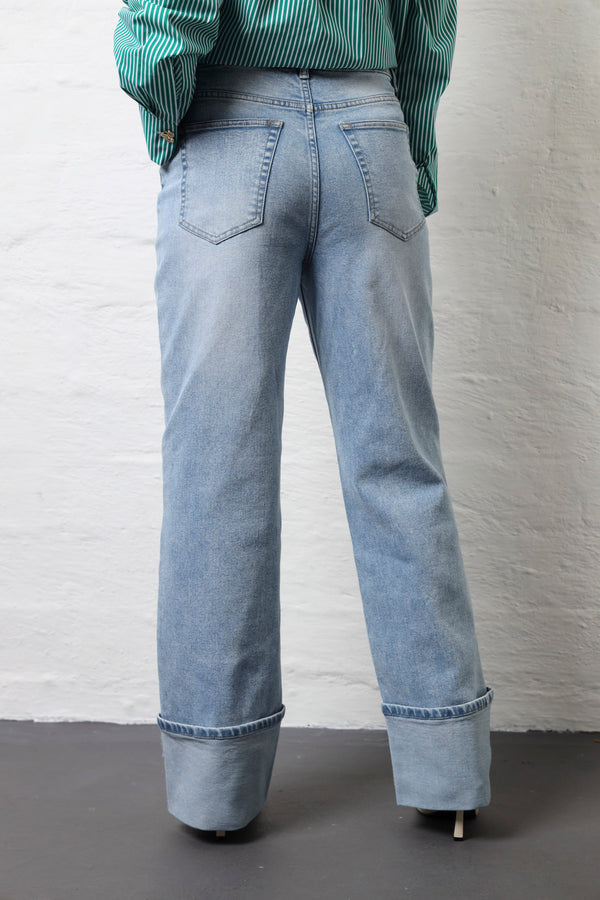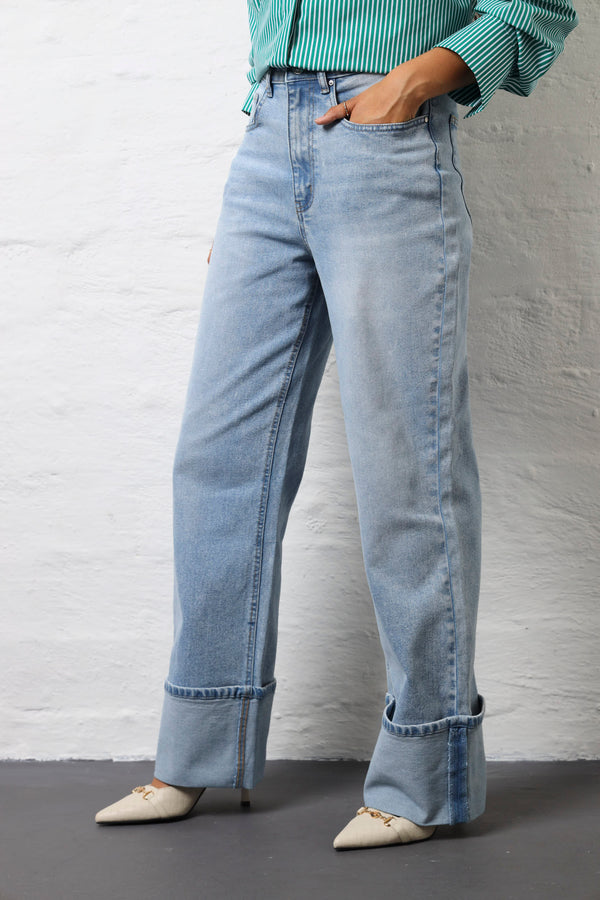 Wide Turn Up Wide Leg Jean - Light Wash