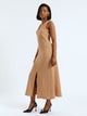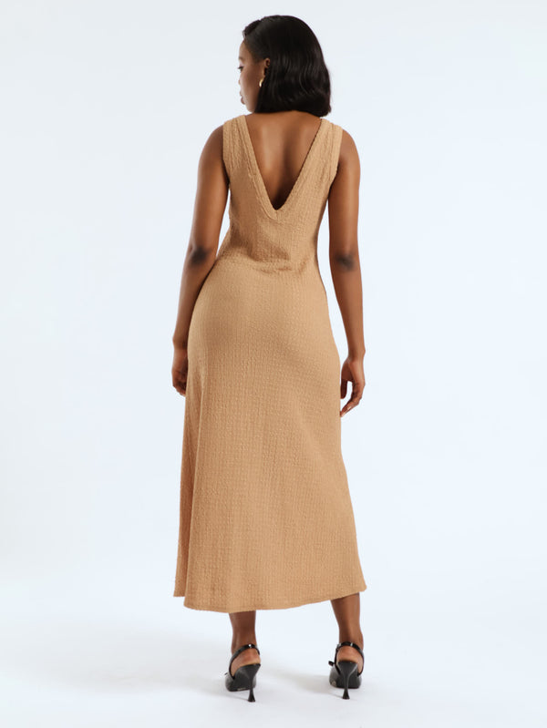 Crinkle Knit Binding Front Maxi Dress - Caramel