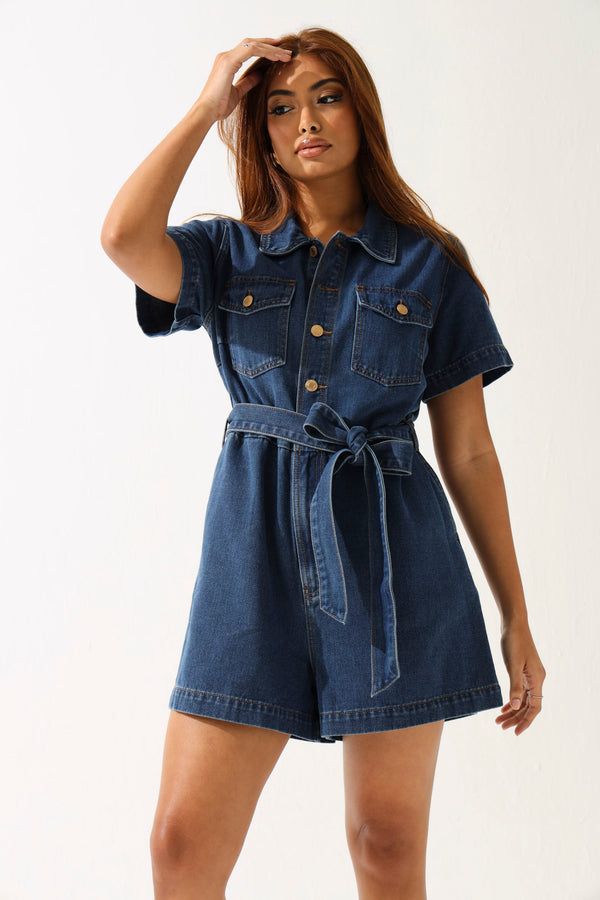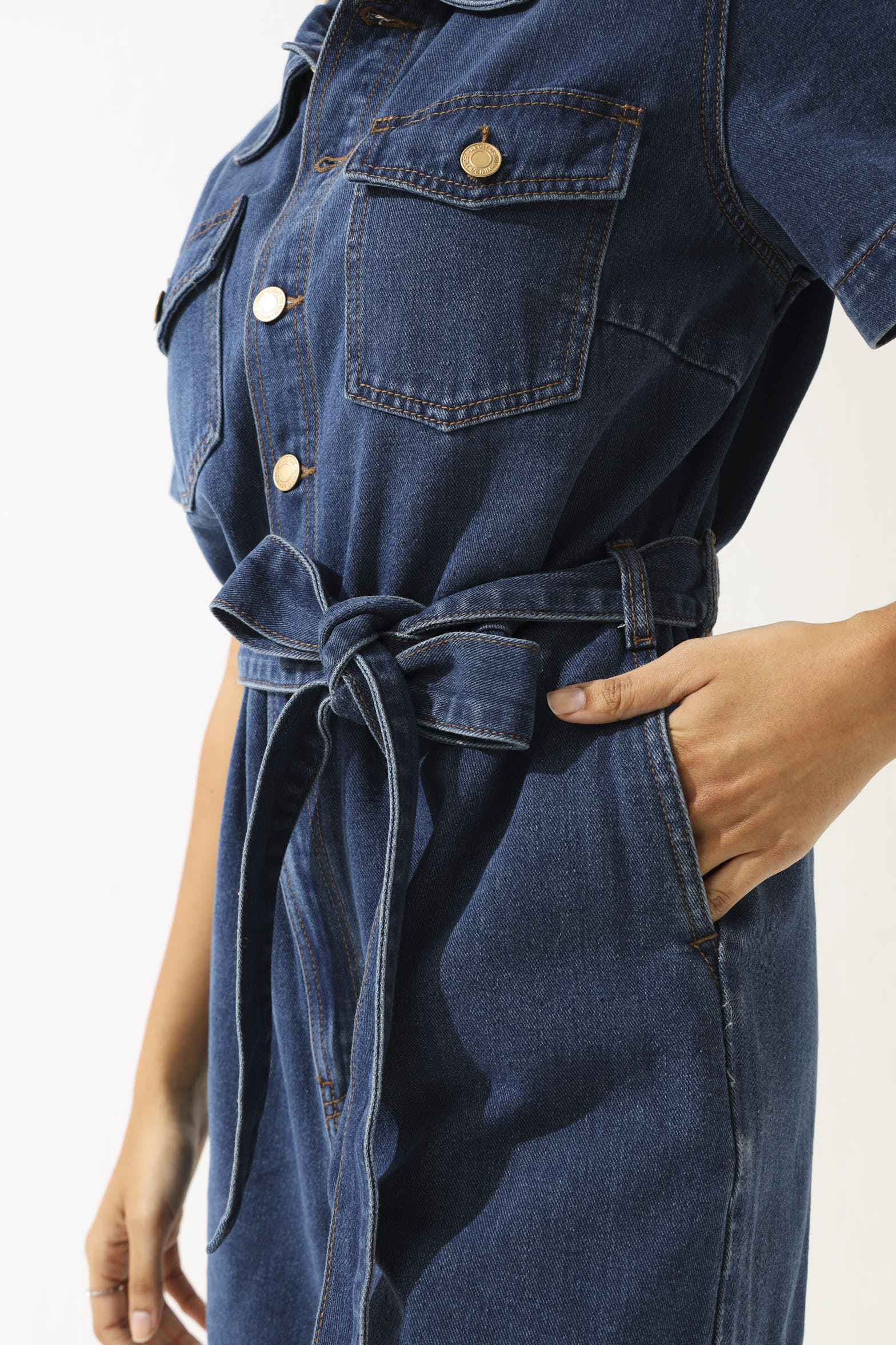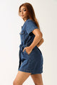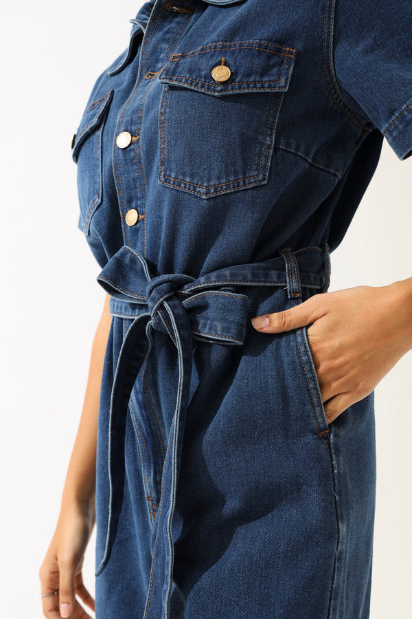 Denim Gold Button Shortall Dress - Medium Wash