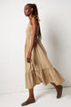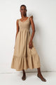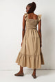 Frill Sleeve Shirred Bodice Maxi Dress - Stone