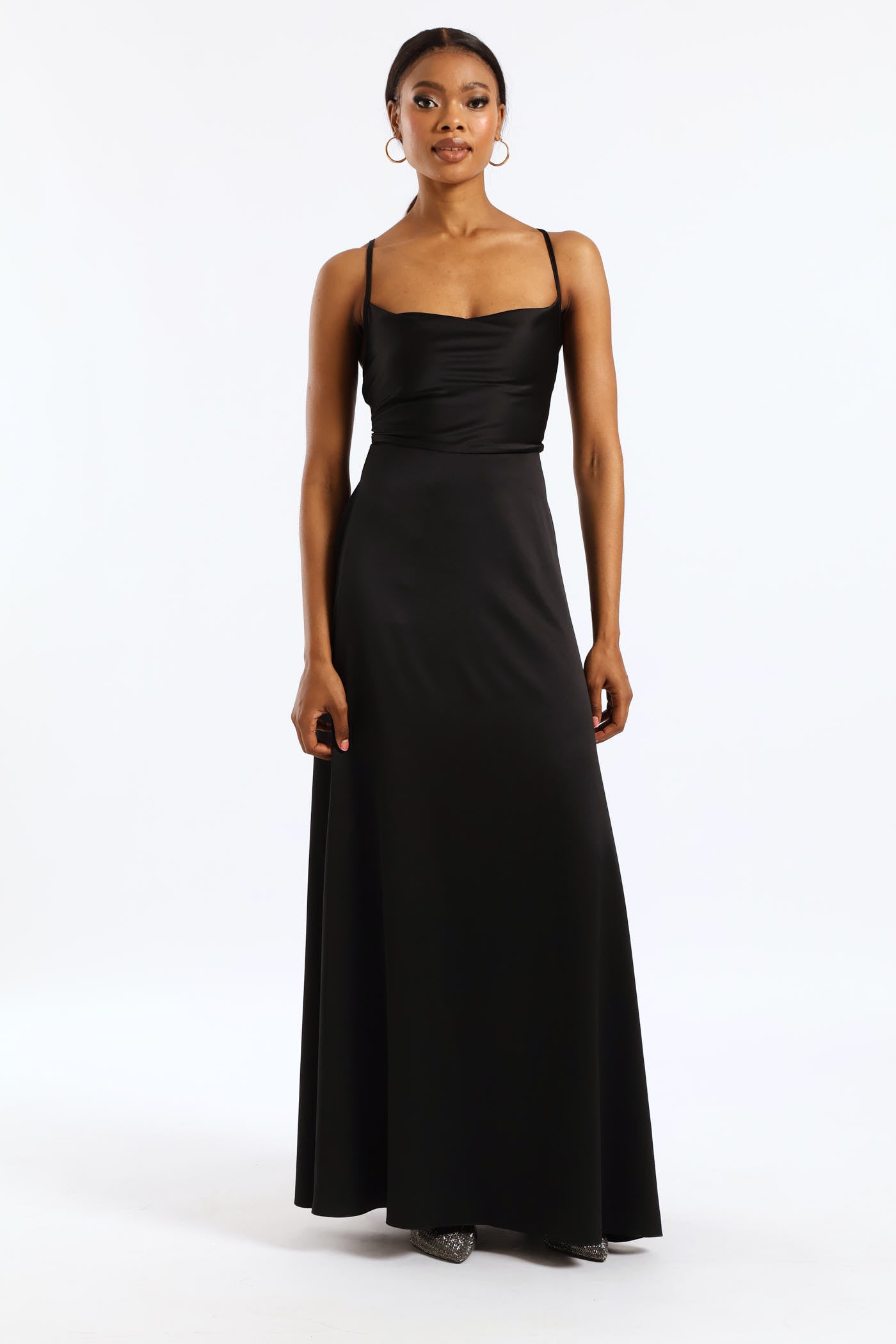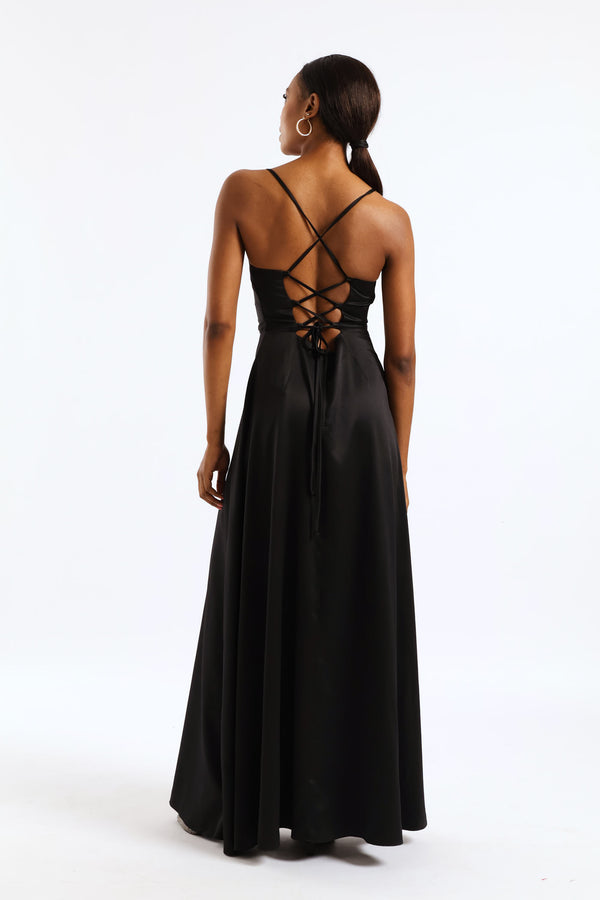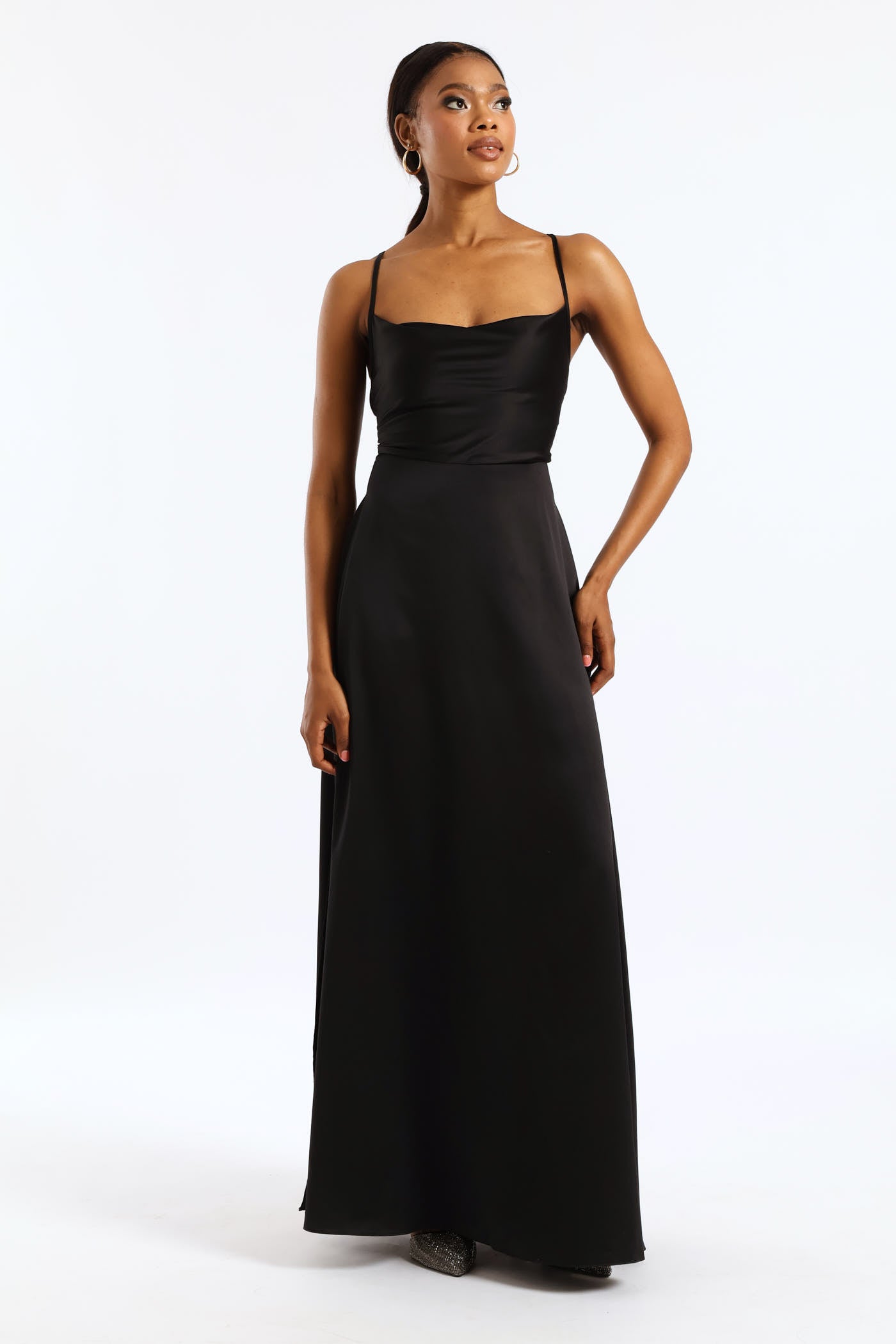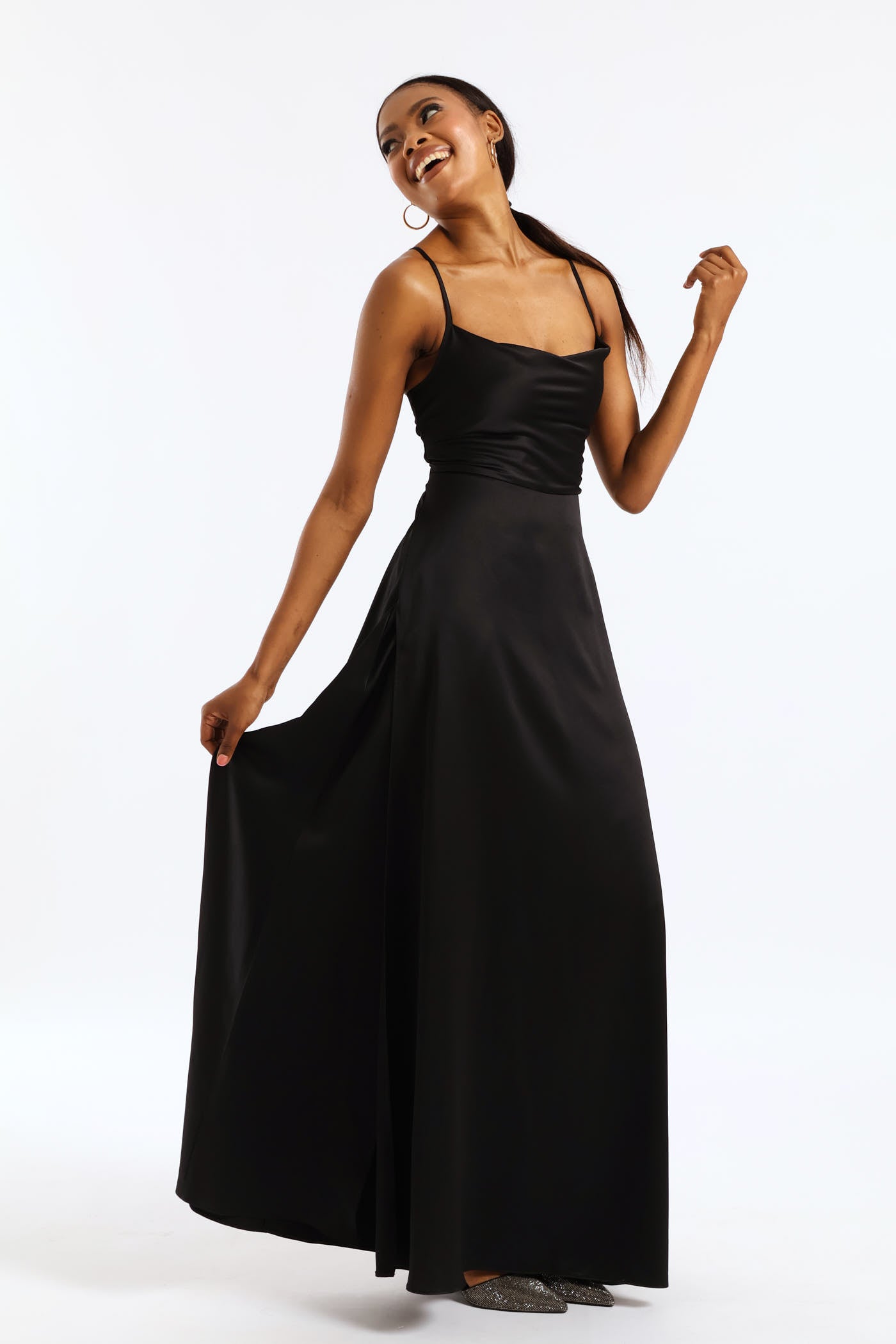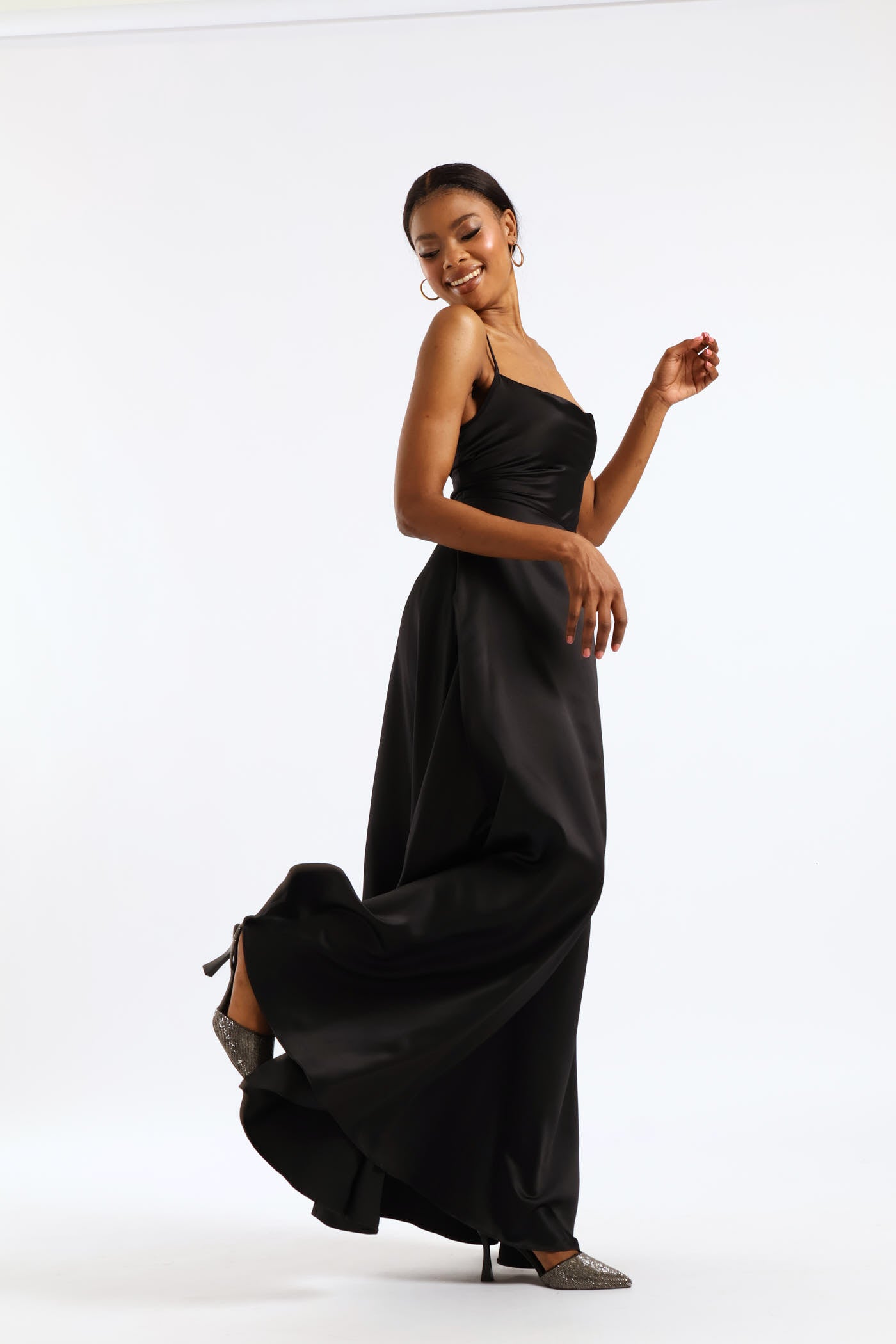 Experience timeless elegance with this Black Satin Maxi Dress. Its smooth, flowing fabric drapes gracefully, enhancing your silhouette for a refined look. Perfect for formal occasions or evening events, this dress combines comfort with sophistication to ensure you stand out effortlessly.