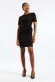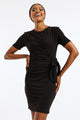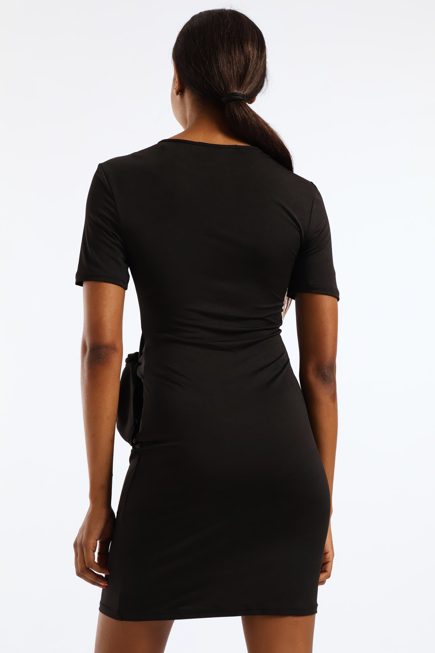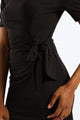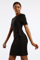 This black short sleeve bodycon dress hugs your curves with a playful twist thanks to the stylish tie detail. Perfect for turning heads at casual outings or chic nights, it combines comfort with a flirty fit. Easy to dress up or down, it’s your new go-to for effortless style.