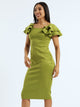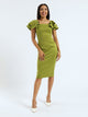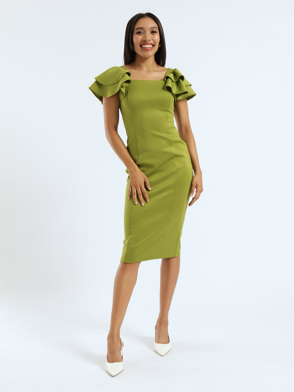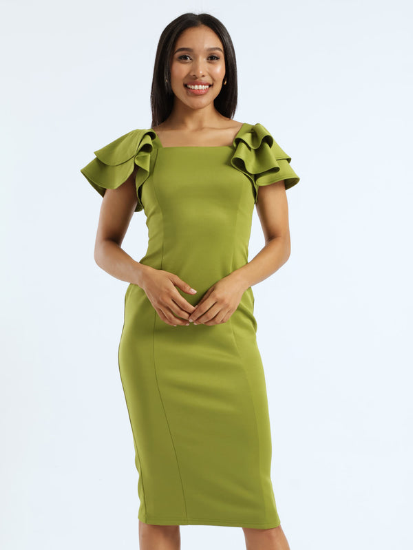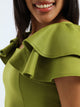 Short Sleeve Wide Frill Bodycon Dress - Green