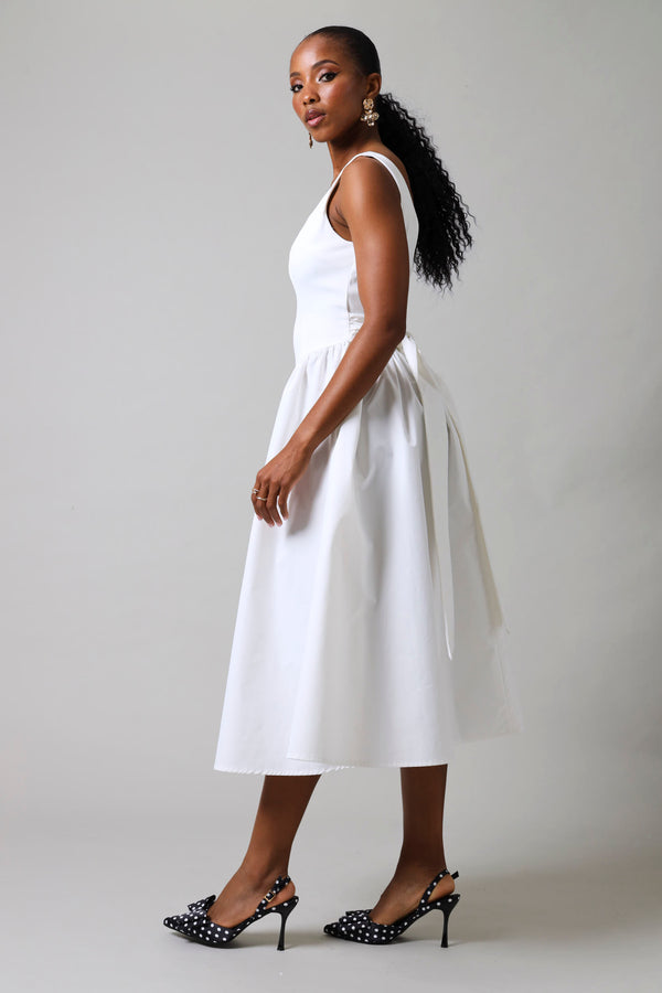 Your moment to shine starts here. This sleeveless drop waist prom dress is pure elegance with a playful edge—crisp white fabric that photographs beautifully and flatters every complexion. The dropped waistline creates a graceful, elongated silhouette that's both timeless and undeniably chic, while the sleeveless cut keeps things fresh and modern. Whether you're dancing the night away or making a grand entrance, this dress moves with you, offering comfort without compromising on glamour. Clean lines, impeccable tailoring, and that perfect white that says "I've got this"—because you absolutely do.