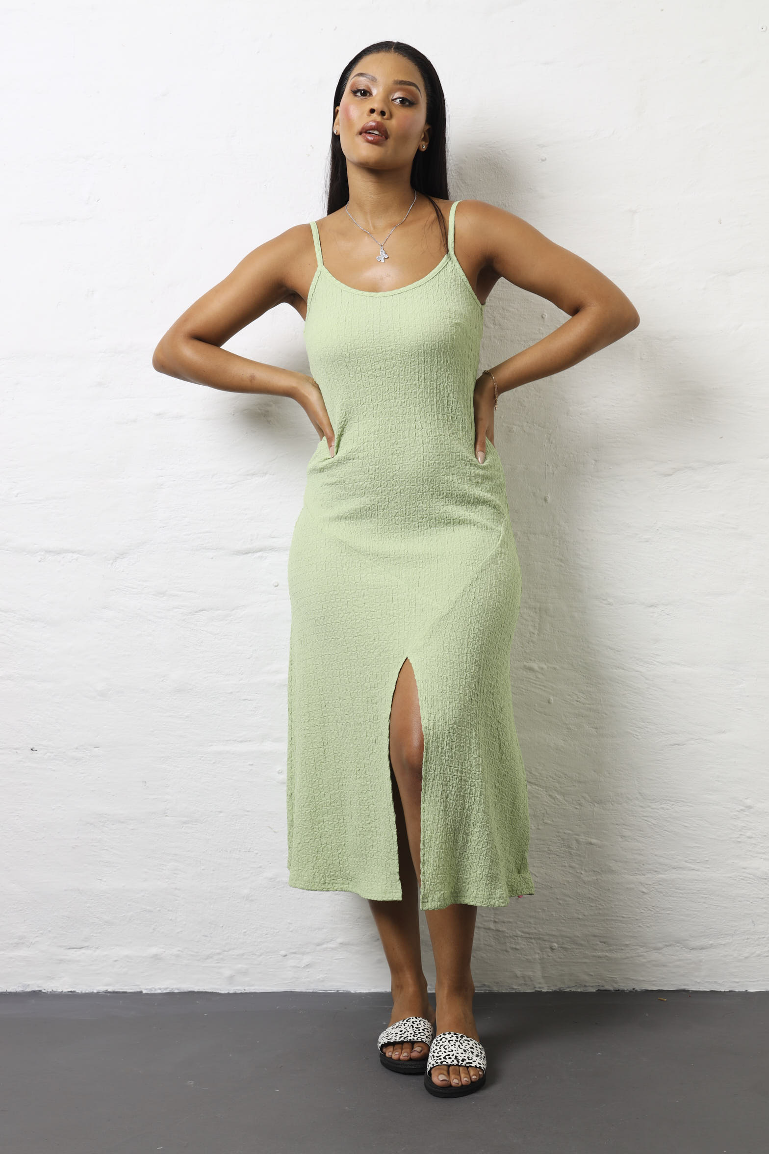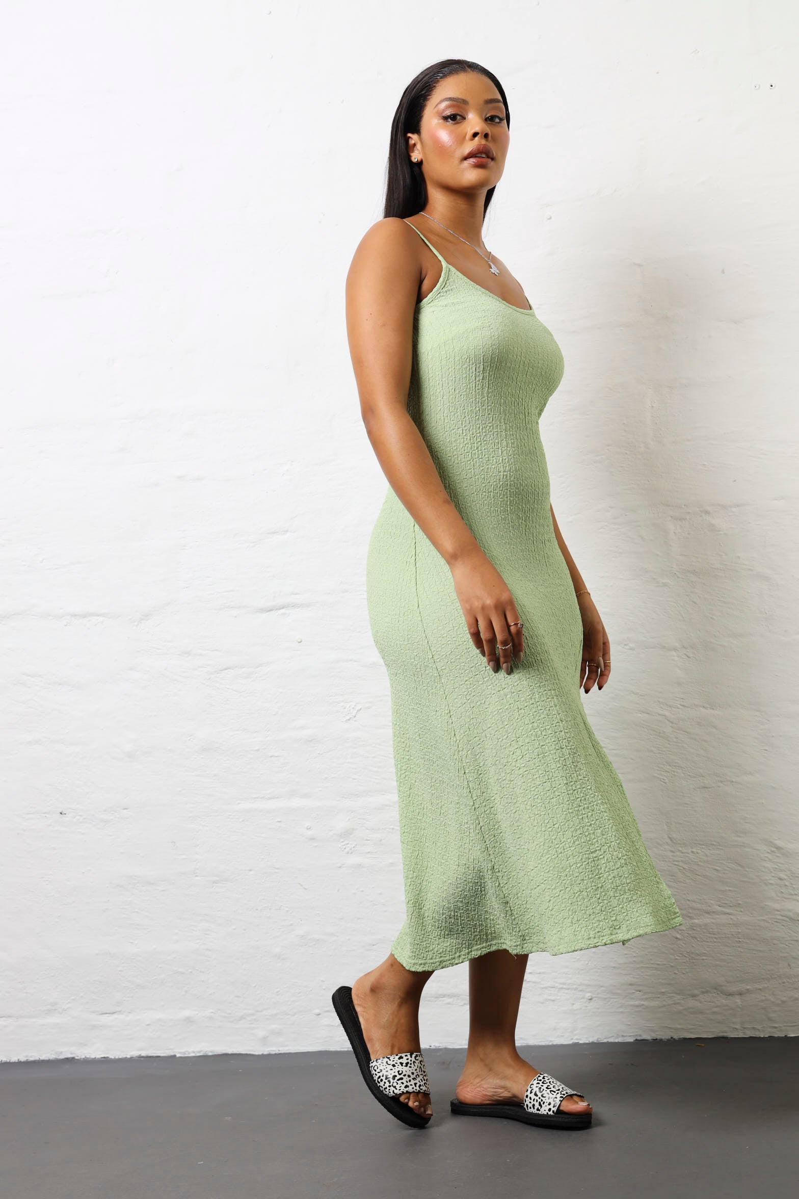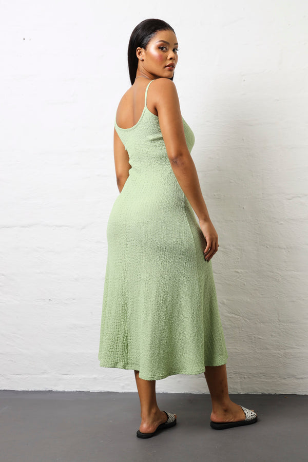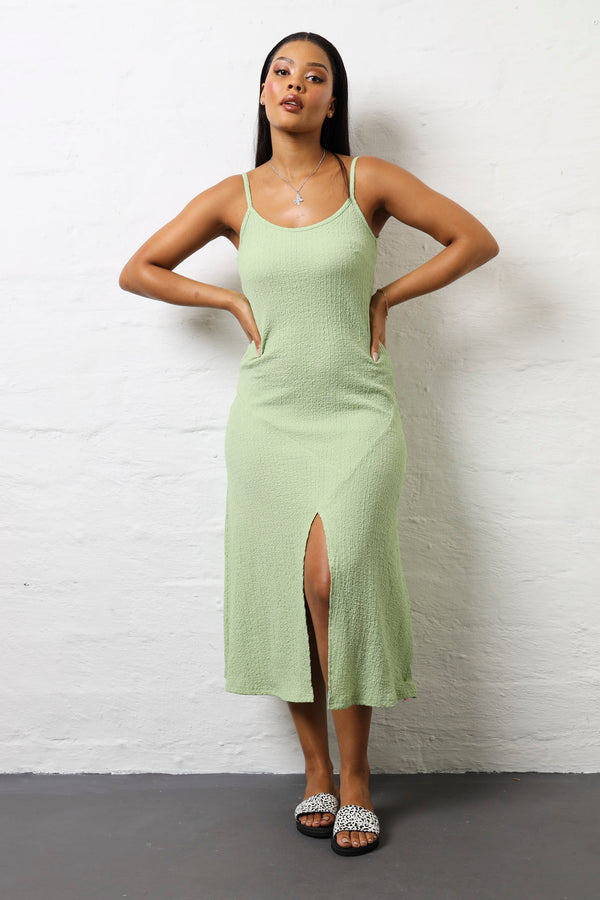 Turn heads in this breezy mint maxi dress that's equal parts romantic and modern. The asymmetrical hanky hem adds an unexpected twist, while delicate straps keep things light and airy. The crinkle fabric gives it an effortlessly textured look that feels both relaxed and refined. Perfect for summer soirées, beach getaways, or whenever you want to feel like the best version of yourself. The soft mint hue is universally flattering and pairs beautifully with minimal jewellery and strappy sandals. This dress proves that sometimes the most memorable looks come from the most playful details.