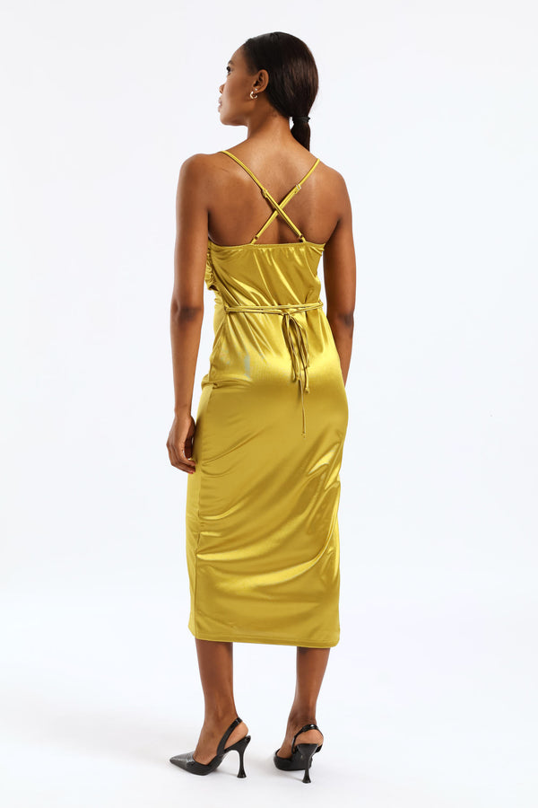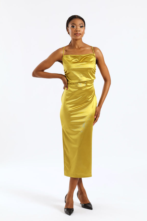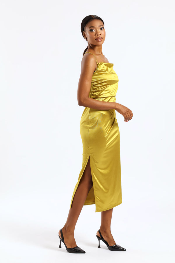 Strappy Shimmer Slinky Cowl Neck Dress - Green