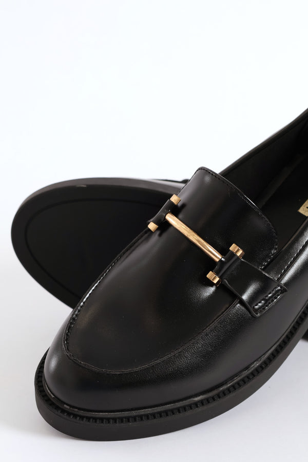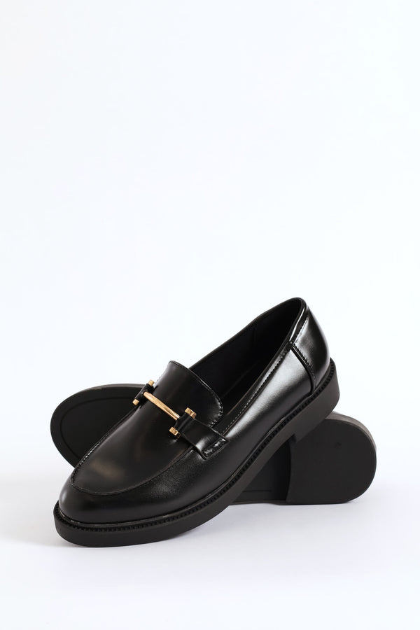 Step up your style game with the Bar Trim Chunky Loafer in Black! These bold loafers bring a fun twist to classic sophistication, featuring a sturdy chunky sole that’s made for strutting. Perfect for adding an edge to any outfit, they combine comfort with a dash of attitude so you can bounce through your day with confidence and flair. Slide into these and let your feet do the talking!
