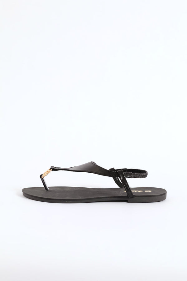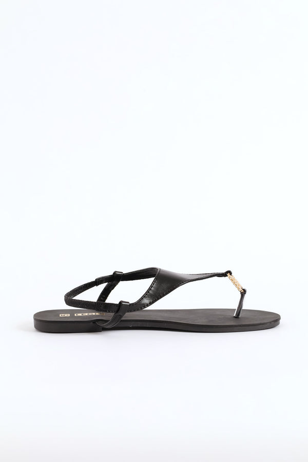 Link Trim Buckle Back Strap Thong Sandal - Black