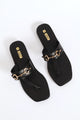 Step out in style with the Link Trim Sandal in Black! Its sleek design and unique trim detail add a fun twist to your everyday look. Lightweight and comfortable, these sandals are perfect for playful strolls or casual hangouts. Add a dash of charm to your summer adventures with this chic, easy-to-wear pair.
